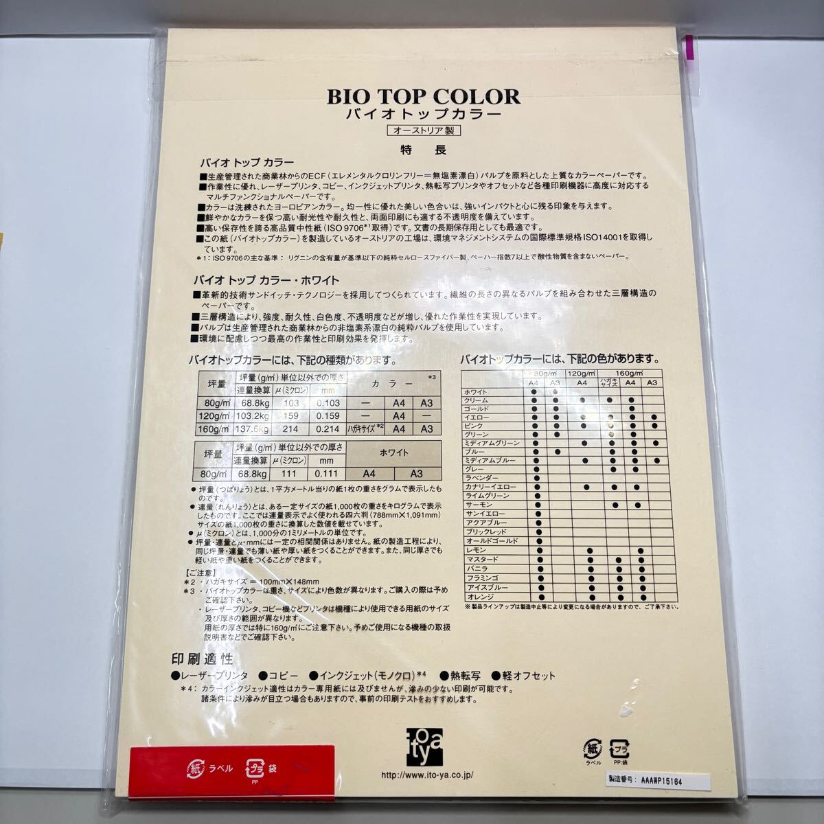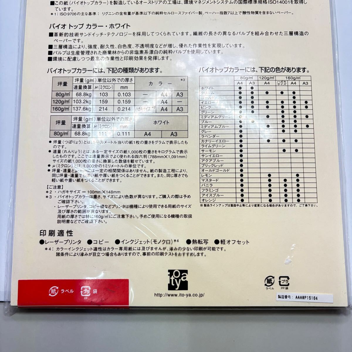 | 【新品未使用】文具店在庫品 itoya バイオトップカラー120 コピー用紙 A4 50枚 クリーム | |||