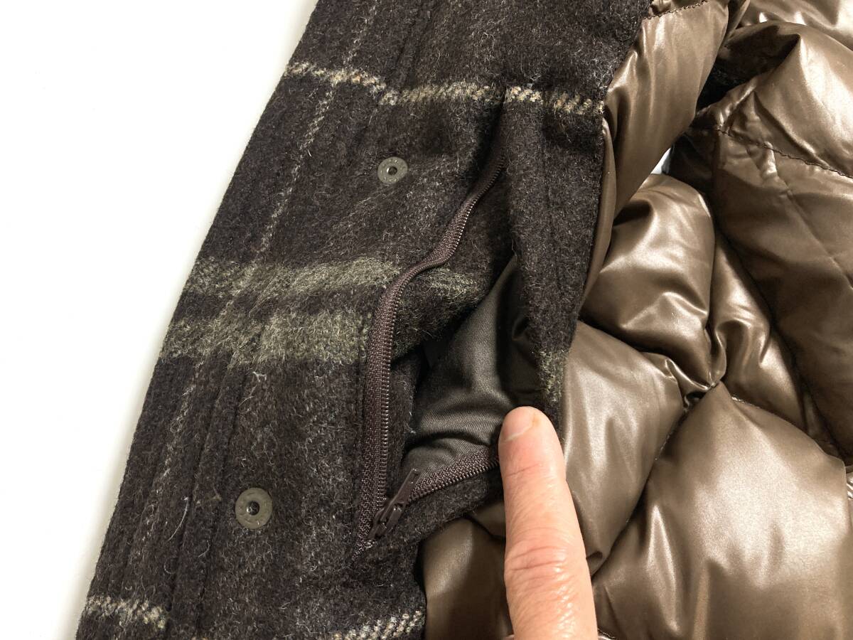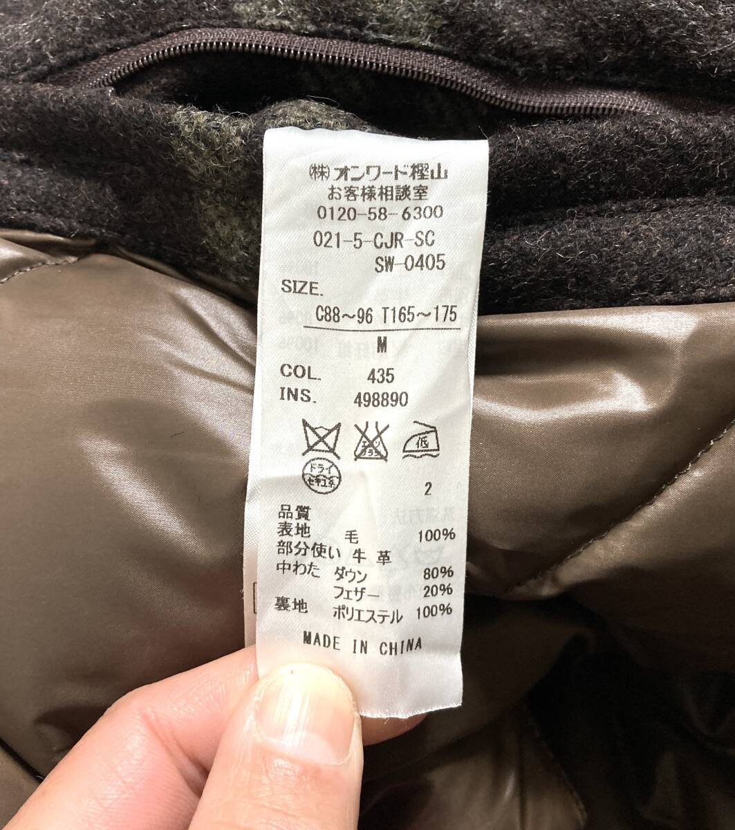 | 素材 | 表地が毛100%のツイード地、裏地がポリエステル100%、中わたがダウン80%フェザー20%、ショルダーパッチが牛革です。 |