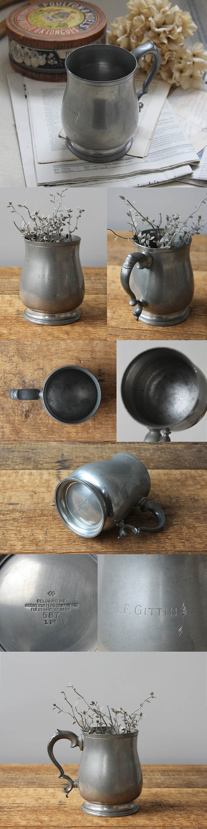イギリス アンティーク ピューター タンカード マグカップ goldsmiths ビアジョッキ 雑貨 P-569