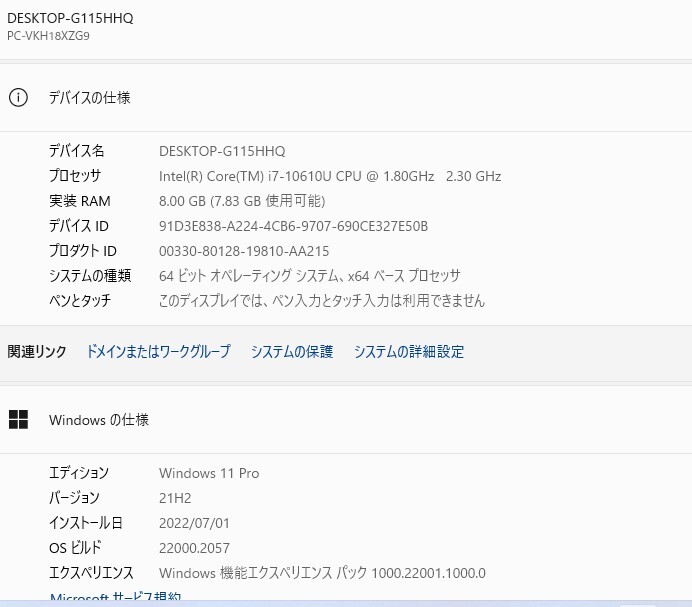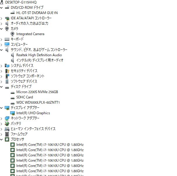 ■CPU:インテル core i7 10610U (@1.80GHz)