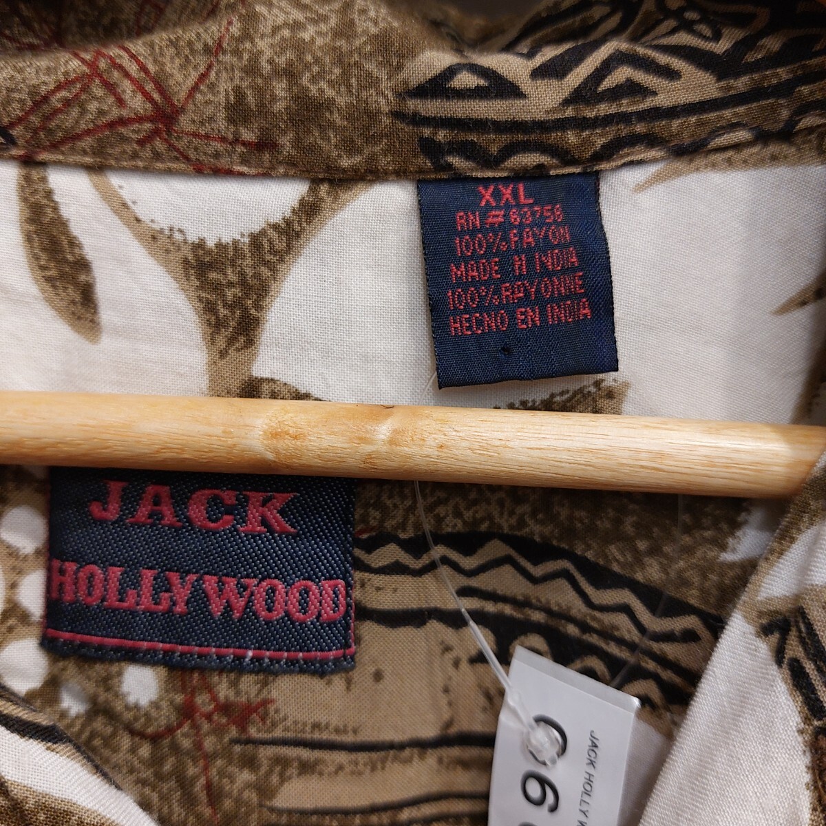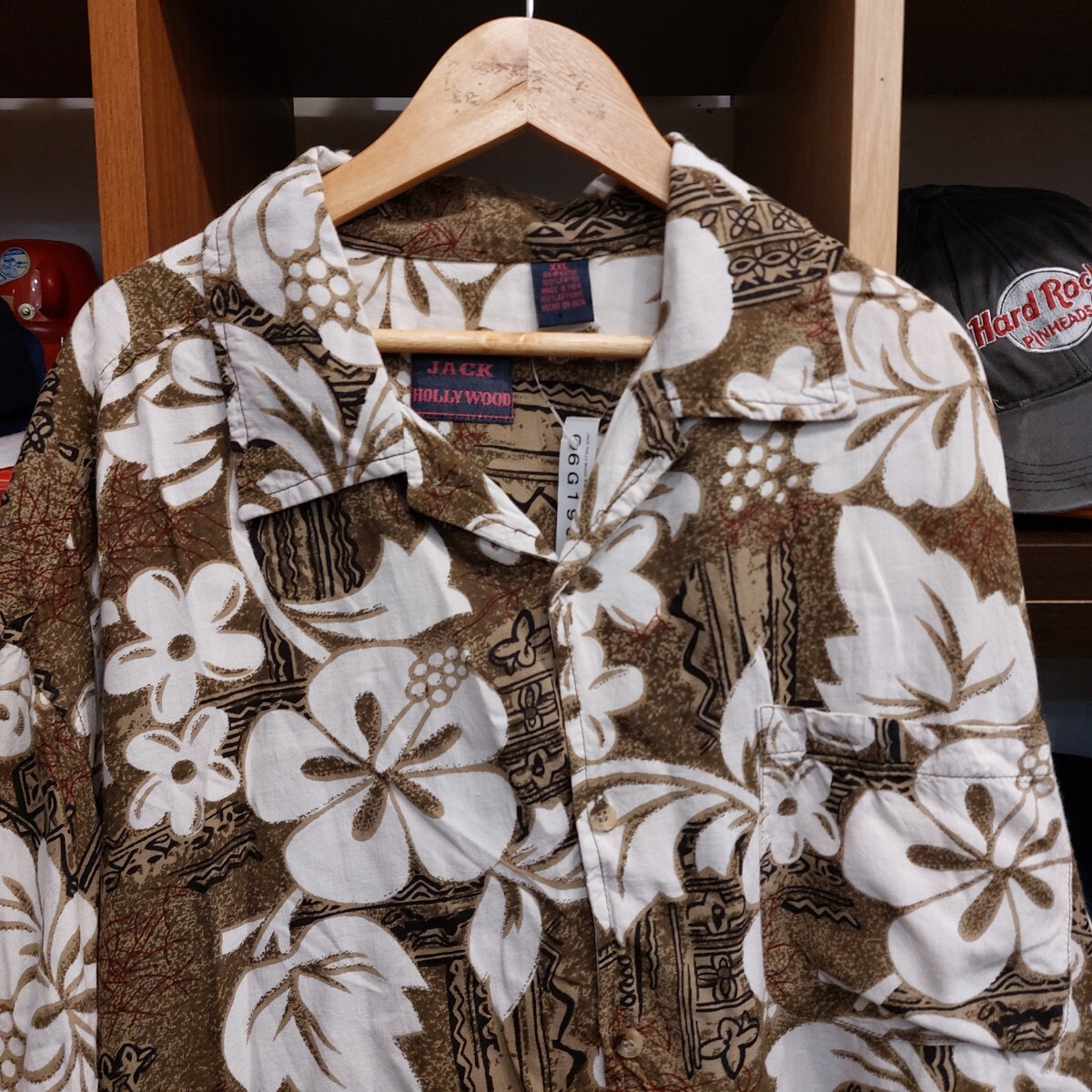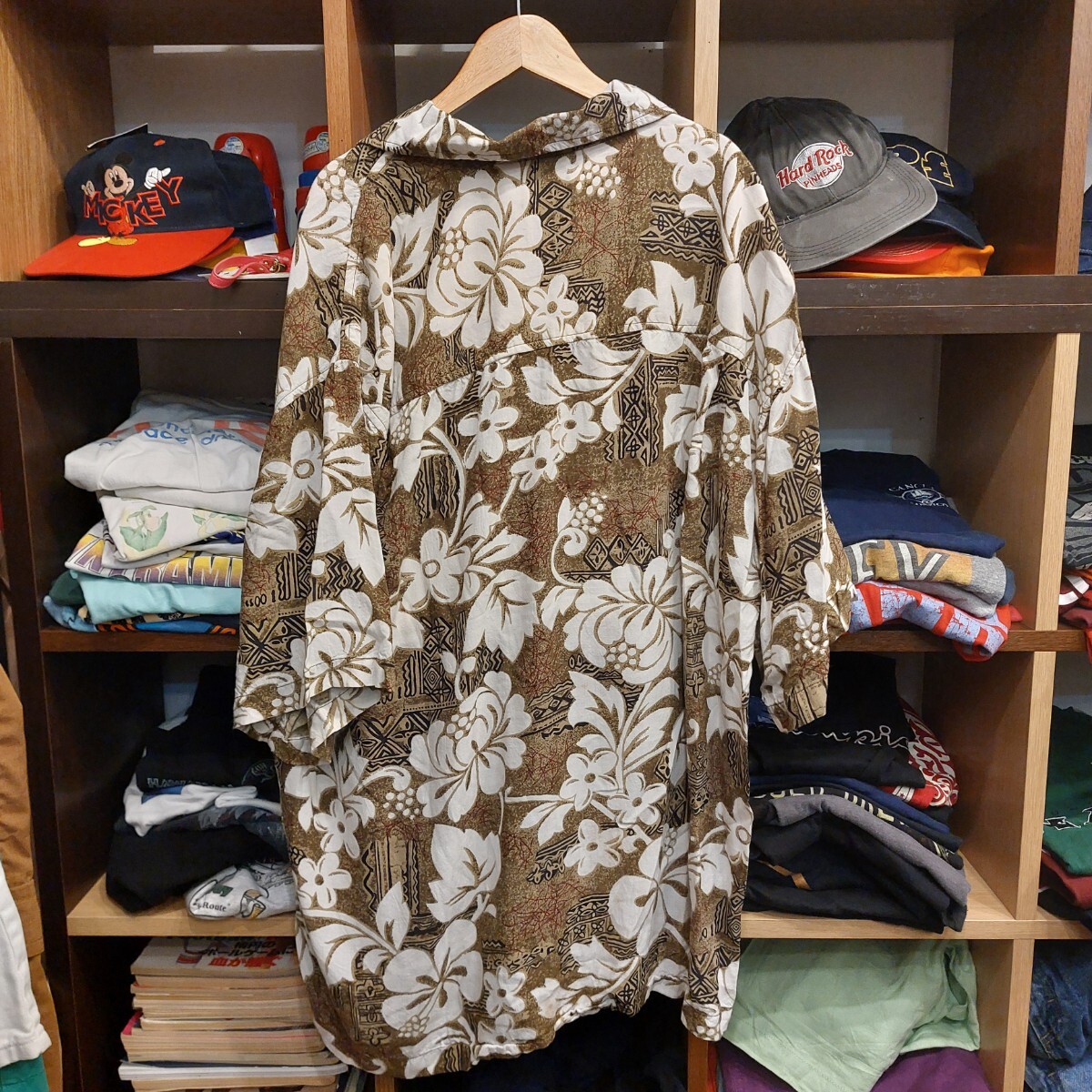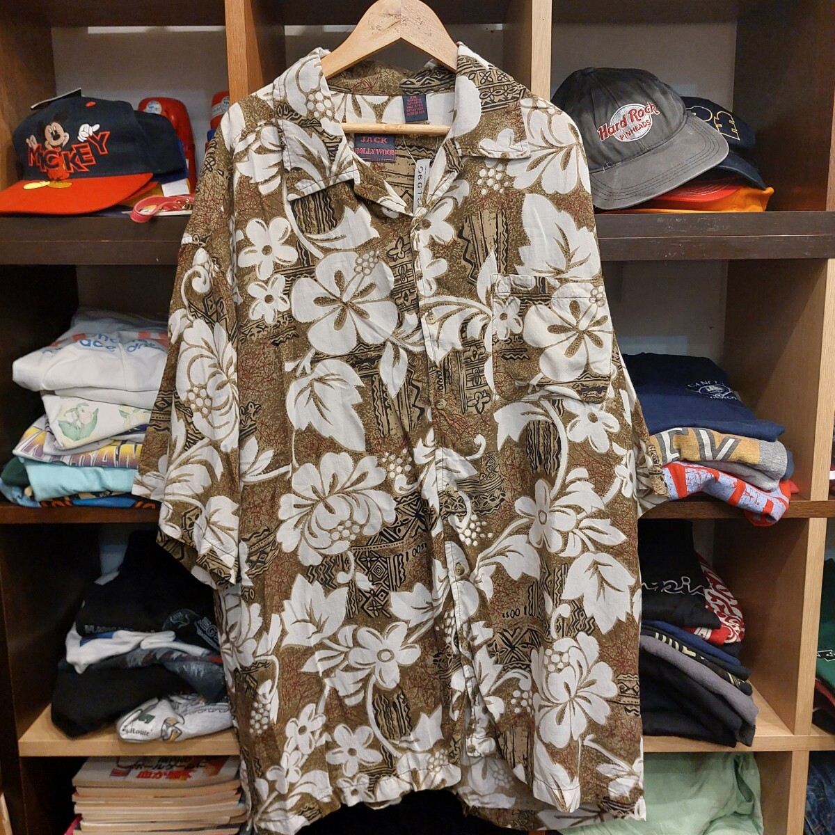 JACK HOLLY WOOD 半袖 レーヨン ハイビスカス 柄シャツ オールパターン アロハ 2XL ブラウンカーキ 06G1905