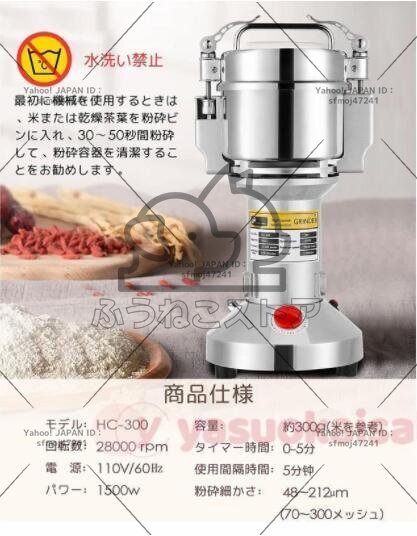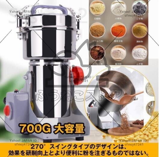 電動製粉機 製粉機 家庭用 業務用 ハイスピードミル コンパクト 粉砕機 700g 小型 電動ミルスパイス 穀物粉砕機 米粉 小麦 生薬 スパイス粉