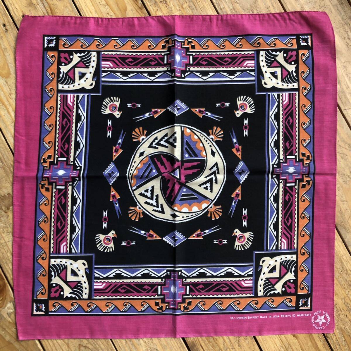 アメリカで購入したセカンドハンド(古着)の、WAMCRAFT ネイティブ柄 バンダナです。