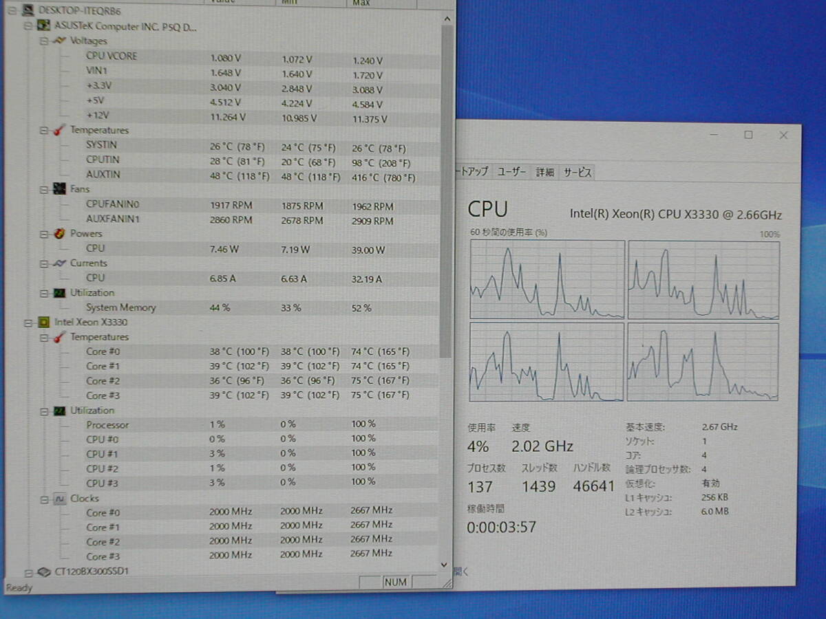 短時間ですがBIOSとWindowsを起動させてCPUの認識を確認しました。