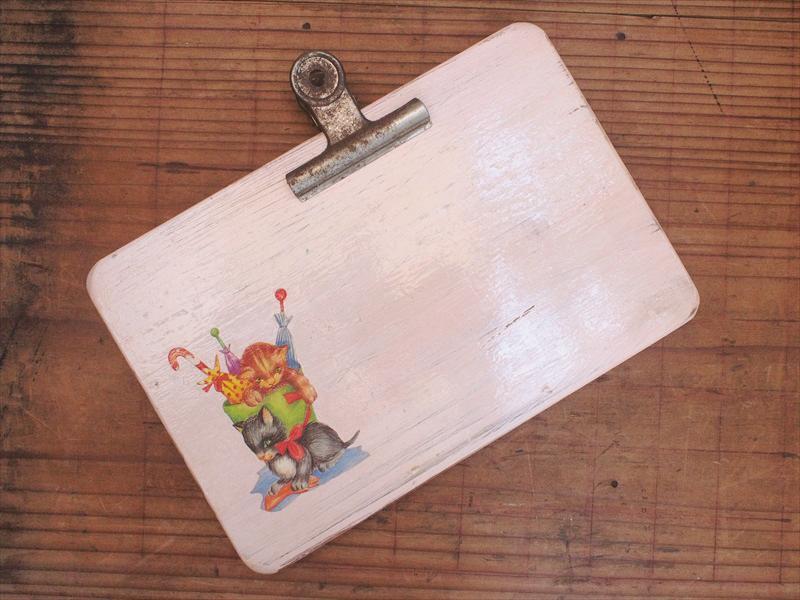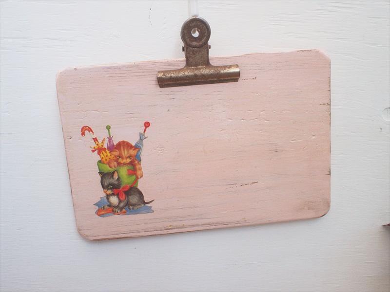 ビンテージリメイク雑貨*錆びたクリップ&ボード・いたずら猫ちゃん☆古道具インテリアディスプレイ
