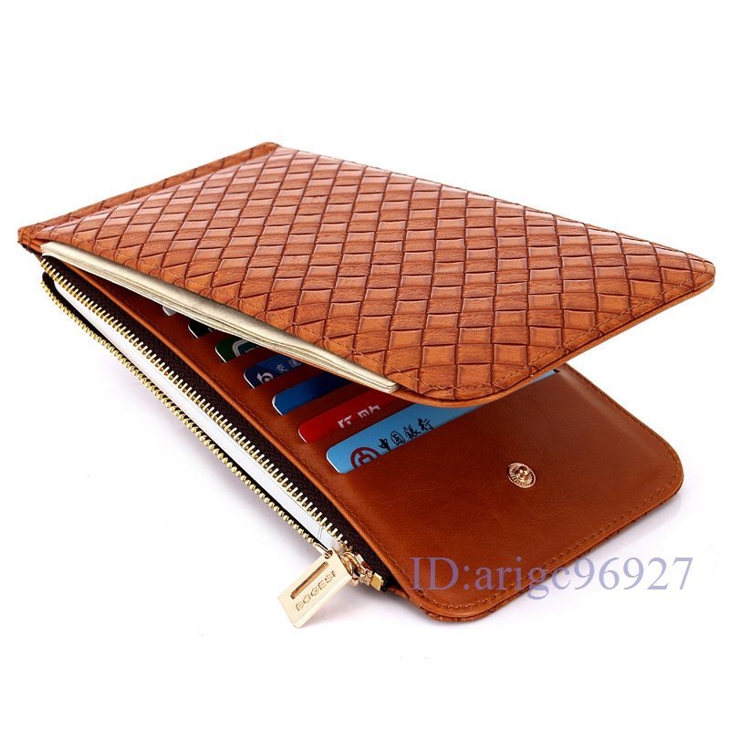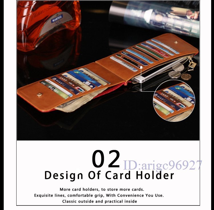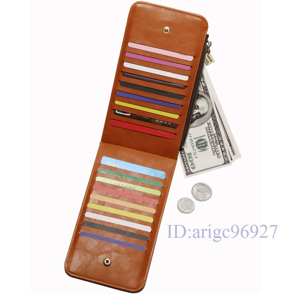 Y603☆新品大容量 メンズ 収納 カードケース 長財布 二つ折り レザー 革 シンプル お洒落 小銭入れ コインケース スリム ダイダイ