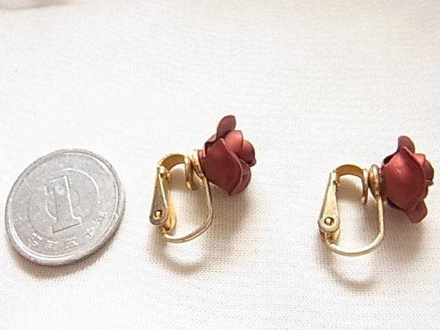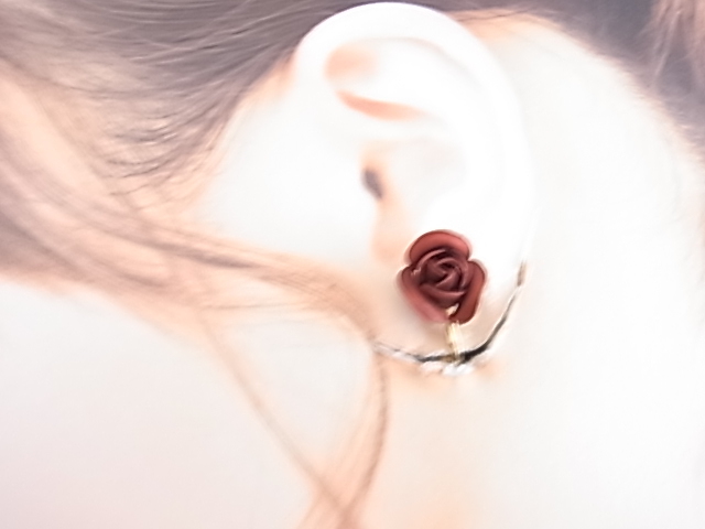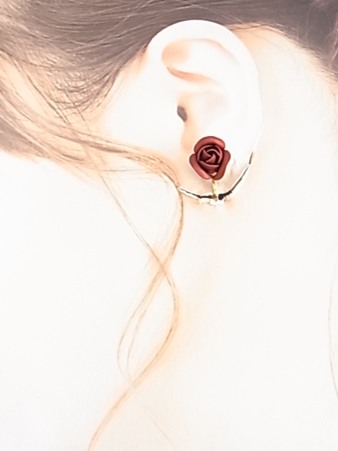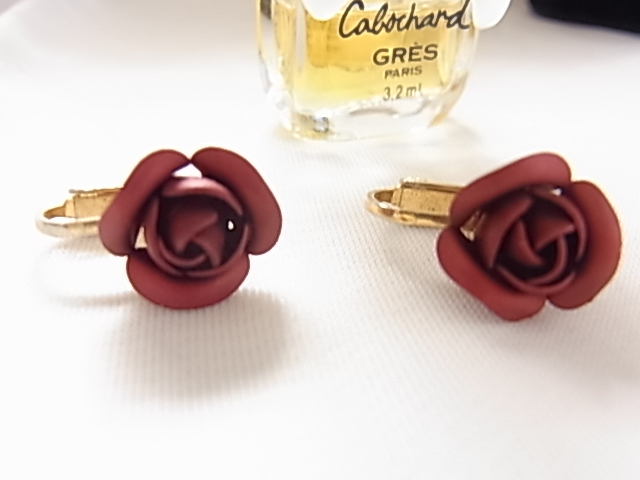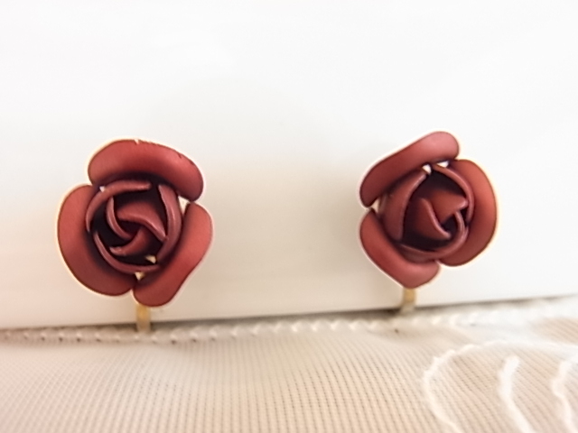 美しい深いボルドーワインカラー レッド系 濃い色 薔薇のお花のモチーフが綺麗なデザイン 華やかに耳元を彩るイヤリング▲