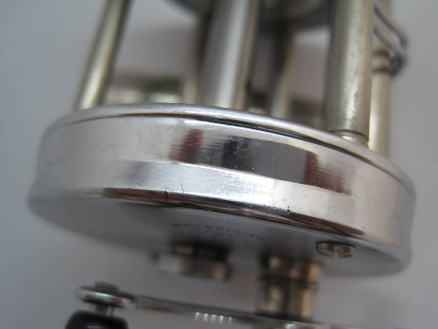 -ほとんどのパーツはめっきされた真鍮製です。スプールもアルミ製では無く、真鍮製ですので、アルミ製スプールに比べると、ハンドルを回した時に重く感じられます。