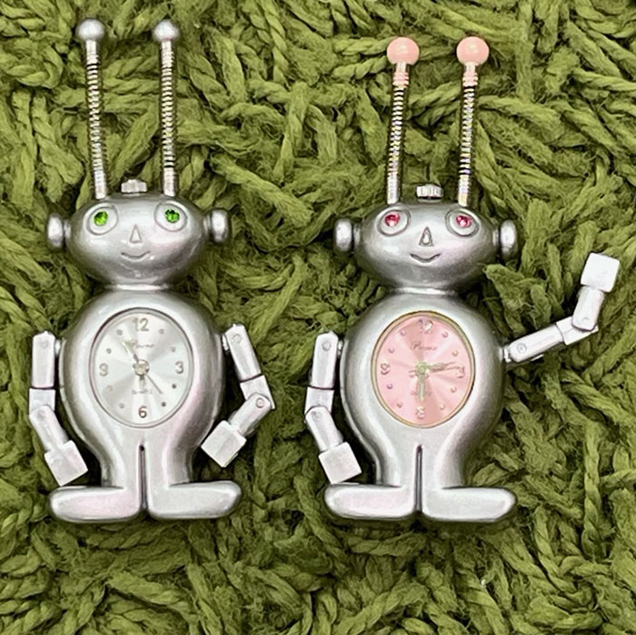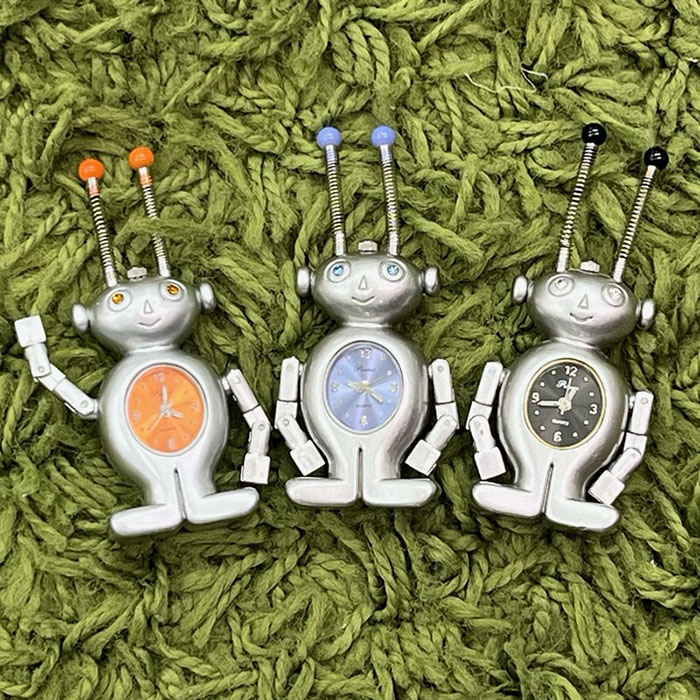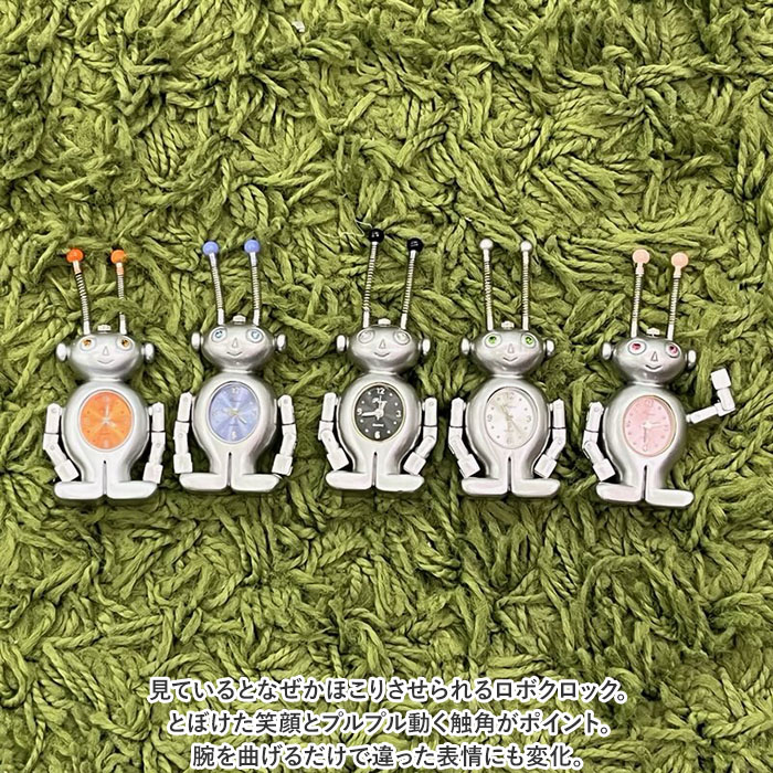 | 商品説明 | ・・見ているとなぜかほこりさせられるロボクロック。とぼけた笑顔とプルプル動く触角がポイント。腕を曲げるだけで違った表情にも変化。 |
