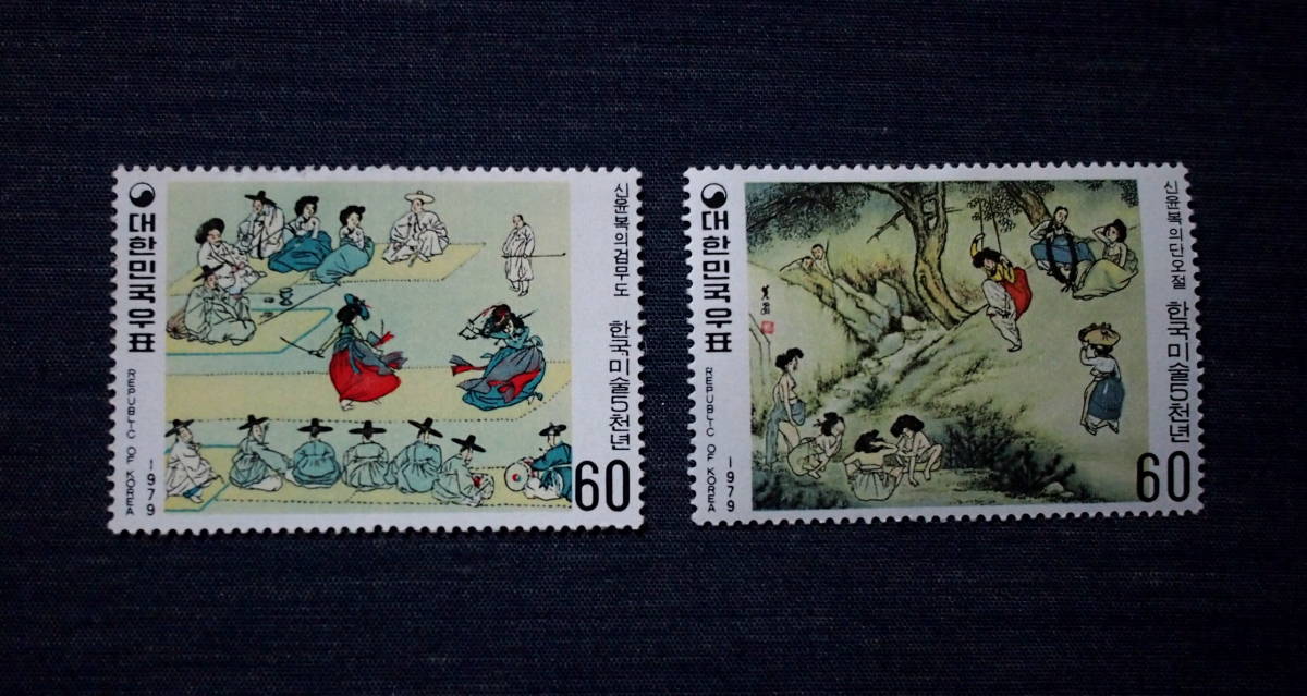 韓国切手 申潤福画・剣舞 2種未使用 1979年