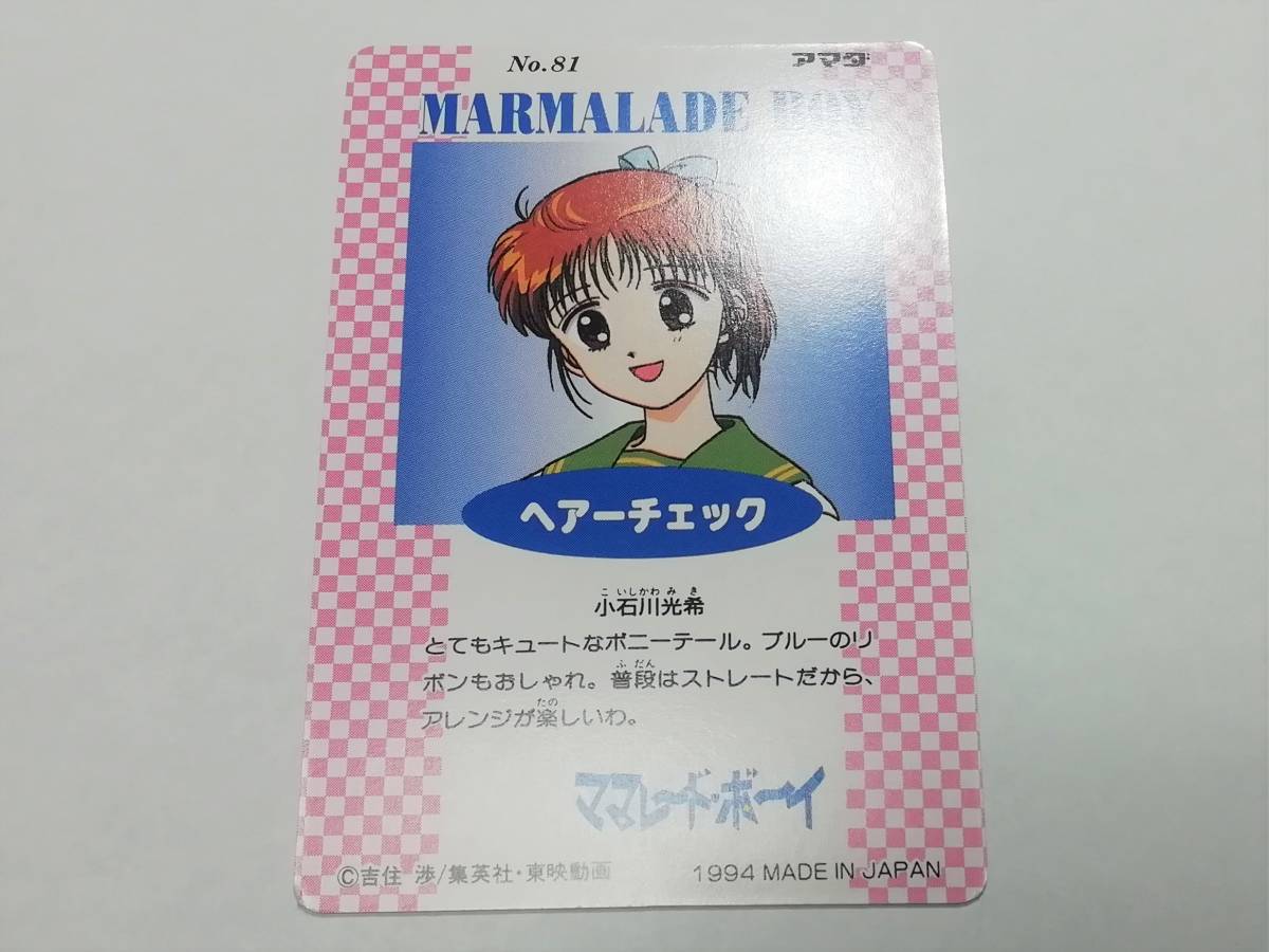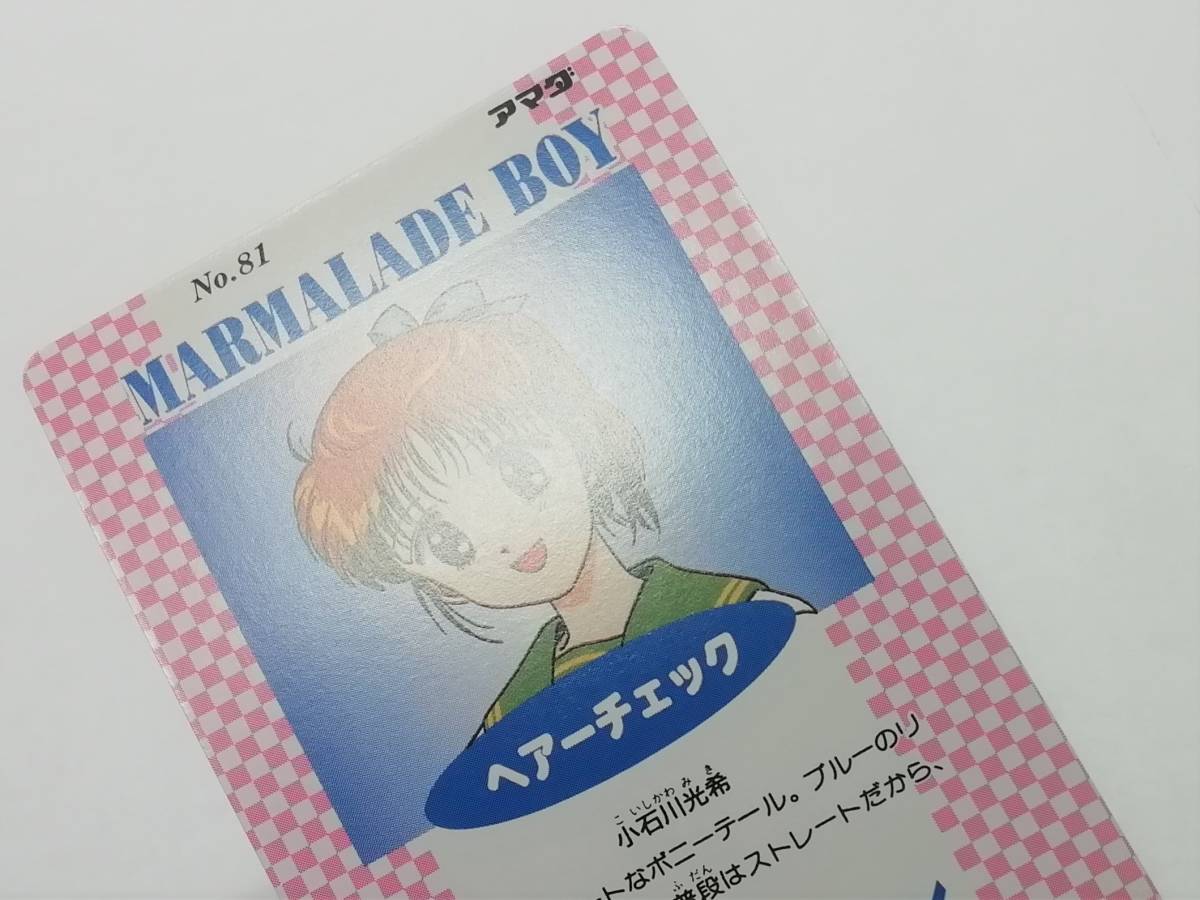 『ママレード・ボーイ』1994年 アマダ ヒーローコレクションカード No.81 プリズム キラ1枚です。(吉住渉・集英社)■カードダス・PPカードなど在庫有り●【全体的な状態5段階評価】A・新品同様の良品【カード表面】微キズ【カード裏面】良好【その他】画像をご確認ください。こちらは製造販売から約30年が経過した品です。★状態の5段階評価・S(新品・極美品)A(美品~良品)B(並品)C(部分難の有る品)D(処分品・粗悪品)●その他の傷みなど目視できる範囲でお知らせしています。コレクター目線で厳しめのランクをつけていますがキャンセル・返品はお受けできませんので状態質問などは「入札前」にしていただき、ご理解ご了承の上お買い求めください。【リクエスト出品可能】多作品の1990~2000年頃のカードダス・PPカード類各種の在庫が多数有ります。お探しの品が有る方はQ&A欄よりお問い合わせください。※トレカはほぼ所有していません。※リクエストいただいた方のご購入をお約束するものではありません。