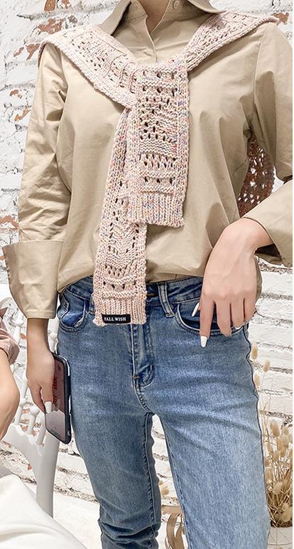 【PJ-34】新品 ストール 肩掛け ニット編み付け襟 ストール 肩冷え対策 飾りストールショール ピンク