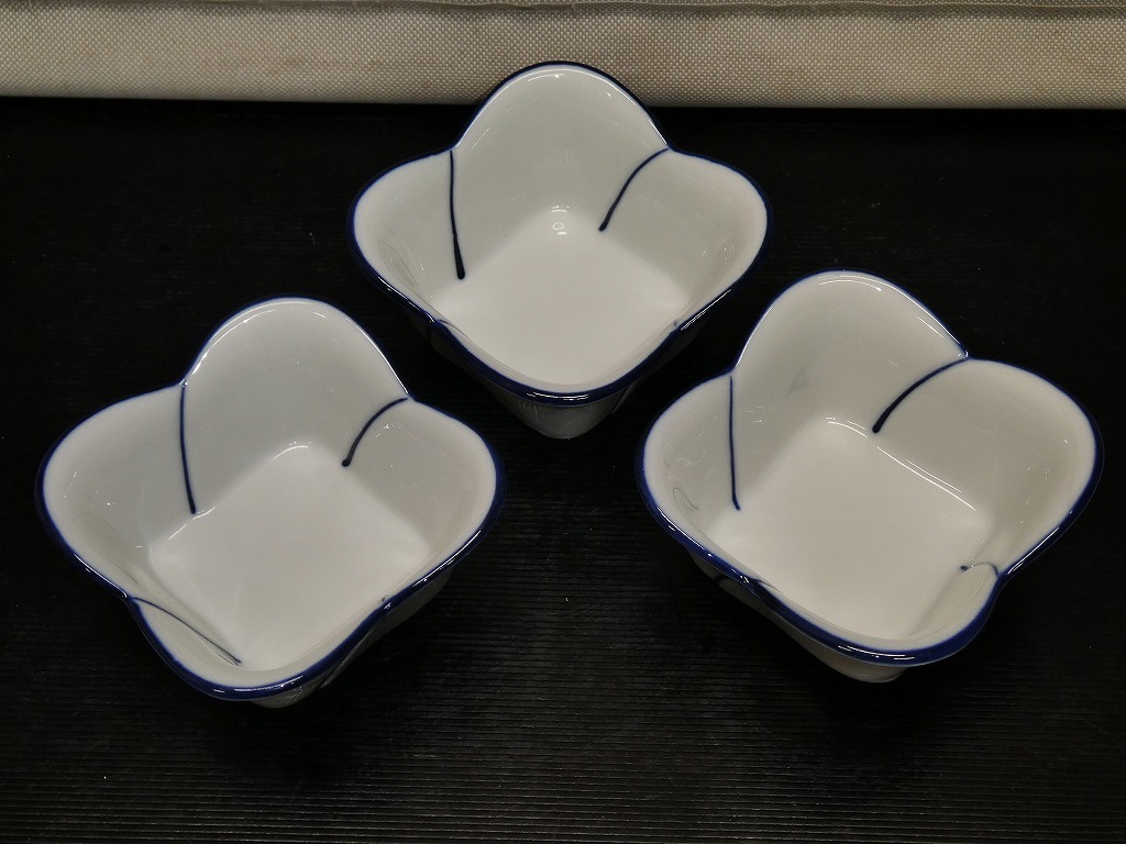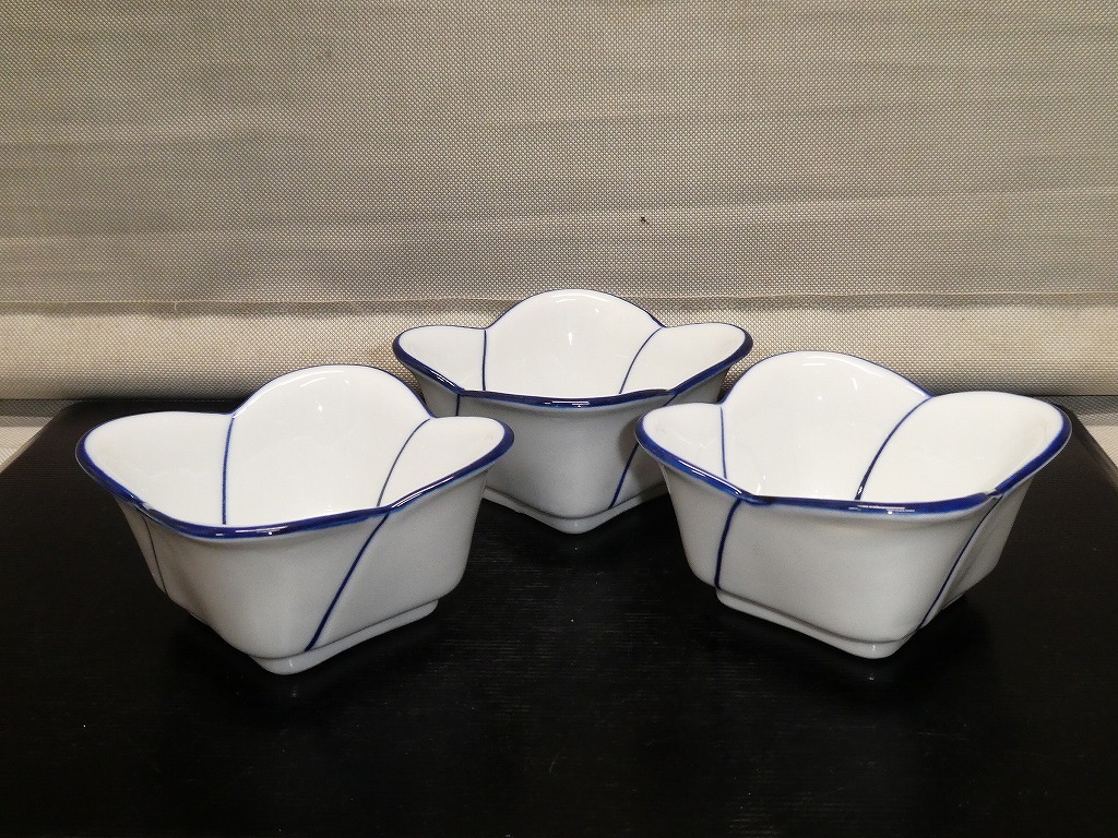 ●菊陶 染付 小鉢 3客 和食器 和鉢 和皿●