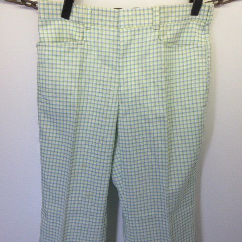 昭和レトロ ベルボトム パンツ w33 青黄 マンシングウェア 美ユーズド オールド JAPAN 古着 e159