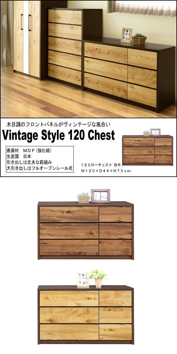 | ◆ 商品名 | 国産 ビンテージ調 120cm幅 ローチェスト |