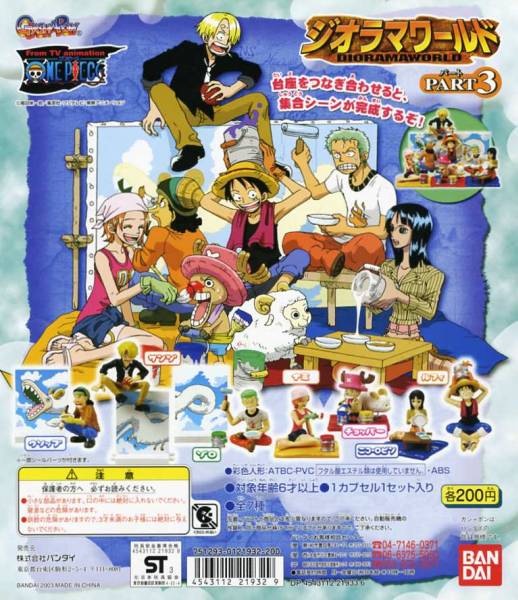■ガシャポン販売機用 ディスプレイ台紙 【ONE PIECE ワンピース ジオラマ ワールド PART.3】…新品台紙1枚 ※BANDAI 2003/バンダイ