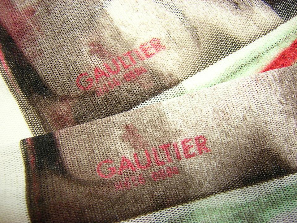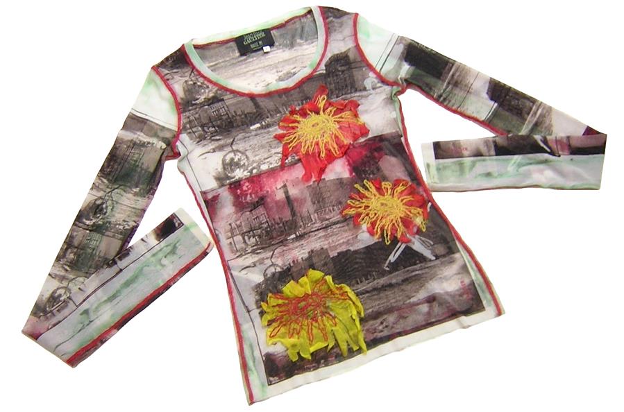 Jean Paul GAULTIER MAILLE FEMME のイタリア製、 別布刺繍チュールカットソーでございます。 伸縮性あり/透け感あり | |