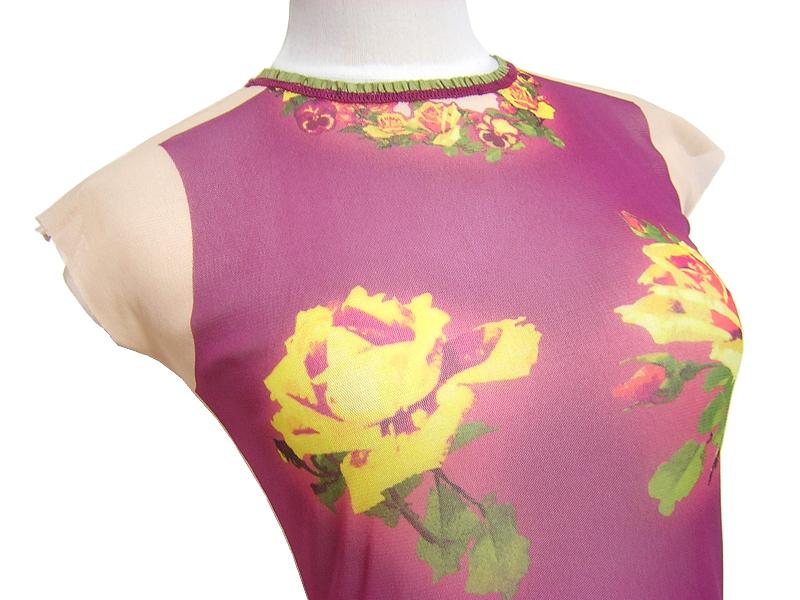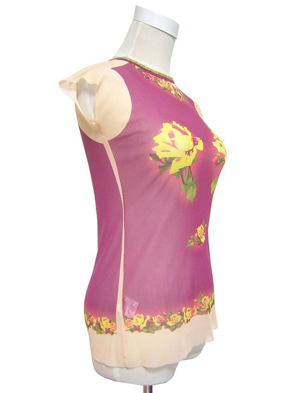 Jean Paul GAULTIER FEMME のオンワード樫山製、 花柄チュールトップスでございます。 伸縮性あり/透け感あり | |