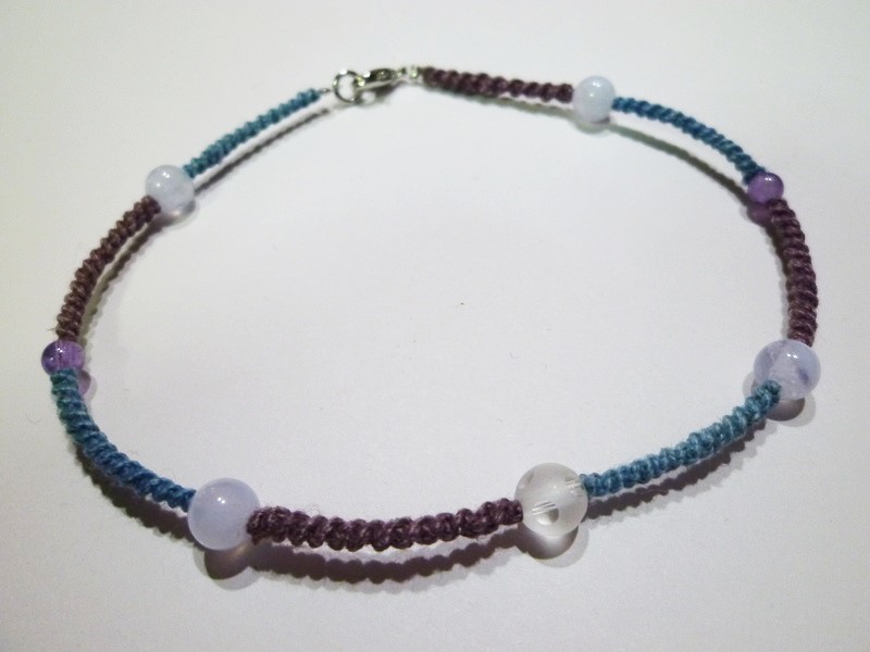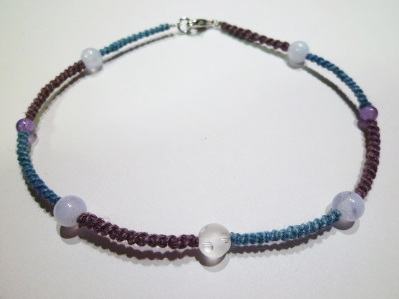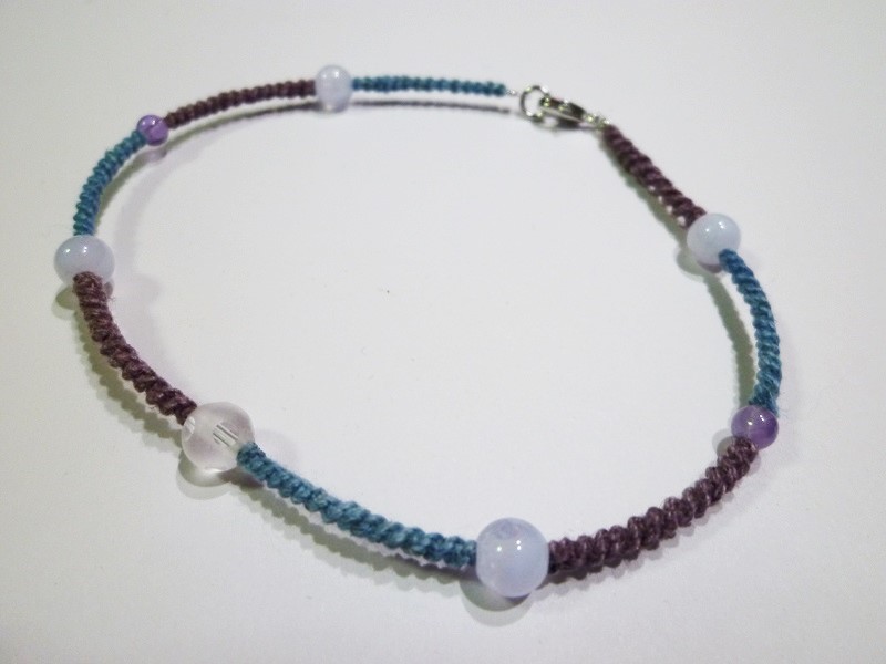 ブルーレースアゲード、水晶、アメジスト  手編みマクラメ アンクレット