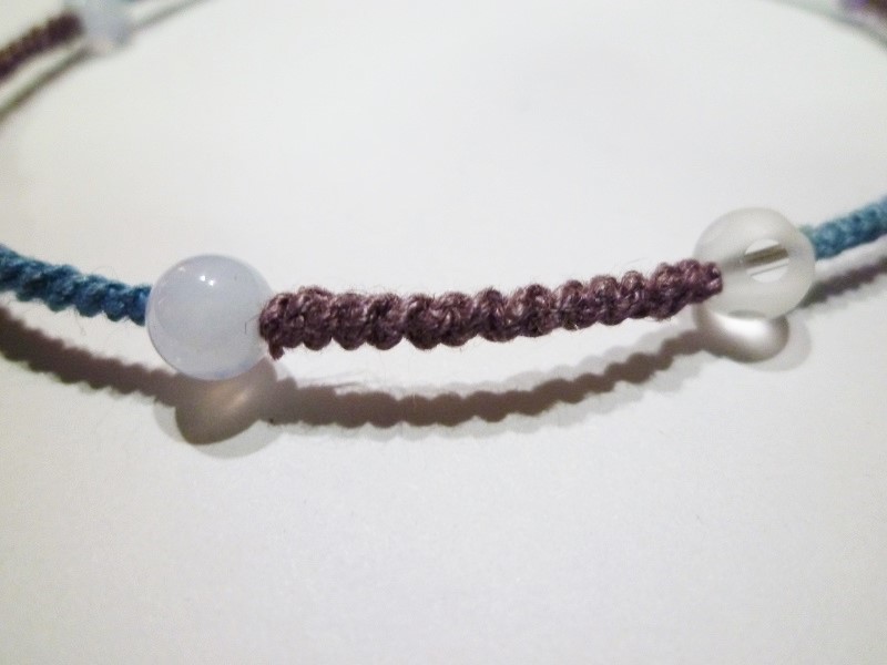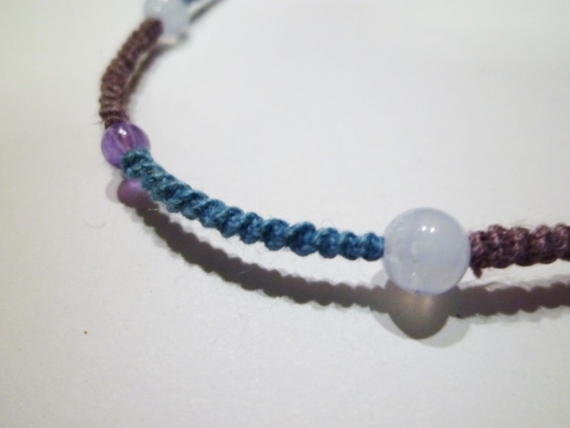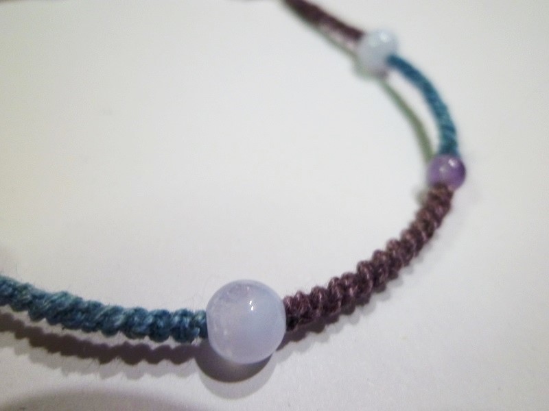 ☆ブルーレースアゲード、水晶、アメジストの手編みマクラメアンクレットです。