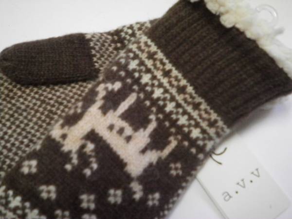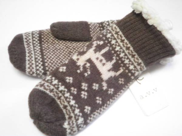 | 【SALEセール】☆新品☆ロゴマーク付きです!!(モニター環境により色が写真と少し異なる場合があります) ☆素材 ウール・ナイロン ☆カラー ダークブラウン系ベースに柄 made in china ☆平置きサイズ *手首~中指の先 約 22cm *手首の幅 約 9cm ※参考程度に (測る場所により多少の誤差が生じます) ☆ブランド a.v.v アー・ヴェ・ヴェ (正規ライセンス商品) |