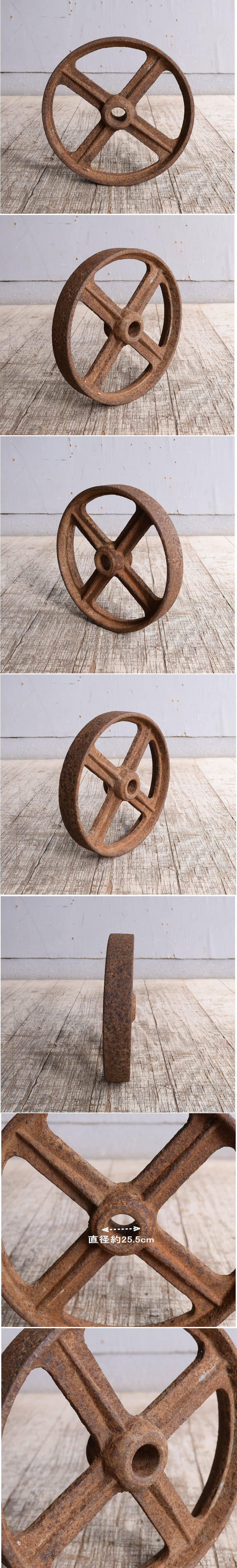 イギリスの蚤の市で見つけてきた古い 鉄製の車輪です。 使い込まれた風合いがとても素敵です。 アイデア次第で、色々と面白いことに使えそうです。 お花屋さん等のショップディスプレイにも オススメです。