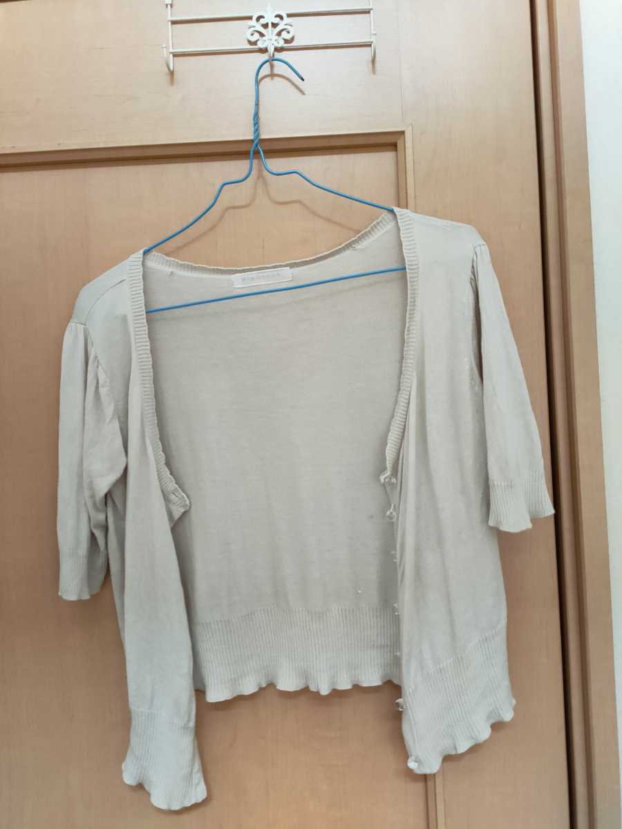 サイズ2のUSED品です。左胸の辺りに5ミリ位の薄いシミがあります。