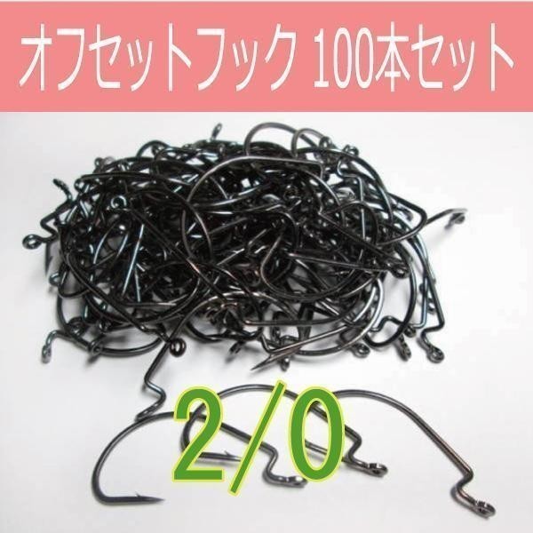 【 送料無料 】オフセットフック Offset hook 2/0 100本セット ワームフック ワーム針 サイズ9種類(#6~5/0)▲