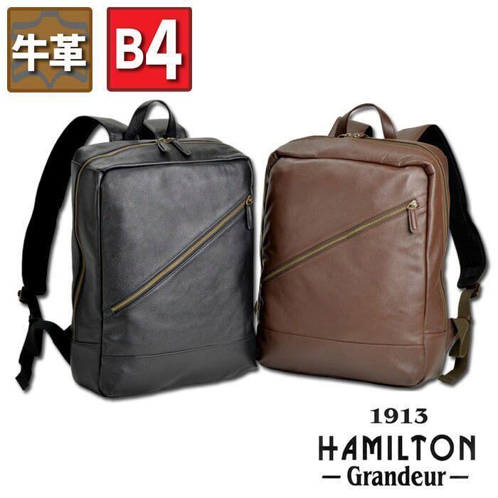 リュック メンズ B4 牛革 YKKファスナー 旅行 カジュアル 黒 チョコ #42564 ハミルトングランジャー HAMILTON -Grandeur-