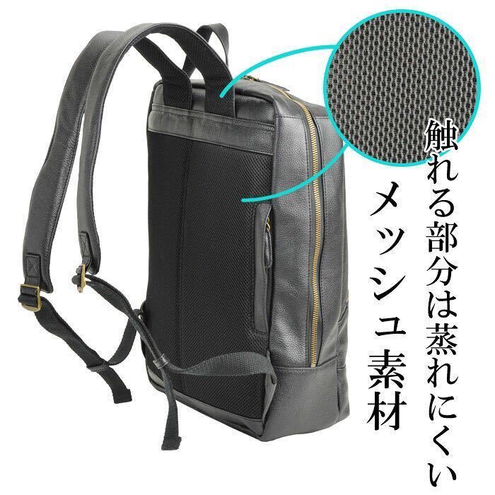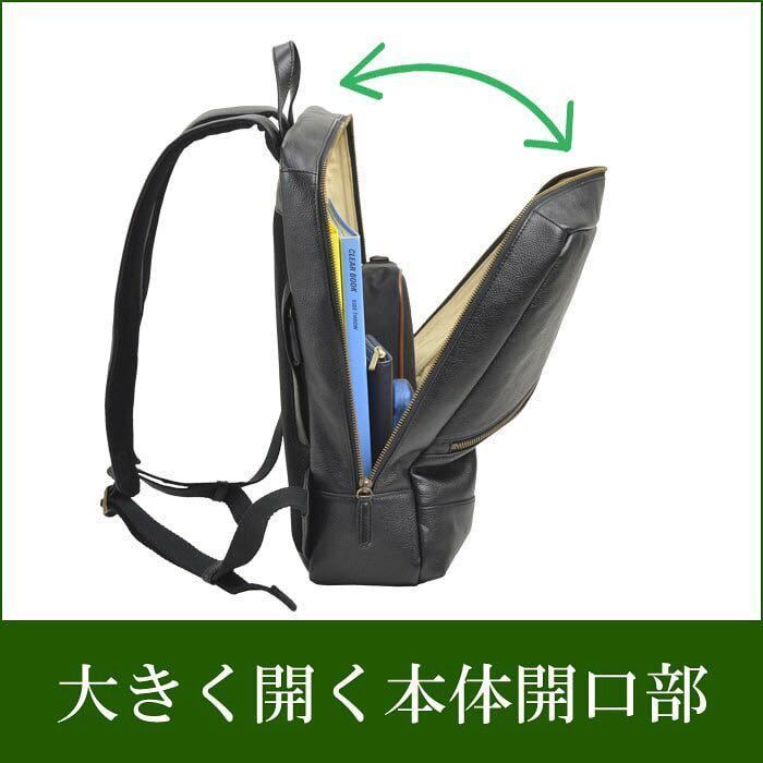 ◆ シボ加工されたソフトな牛革を使用したリュック。