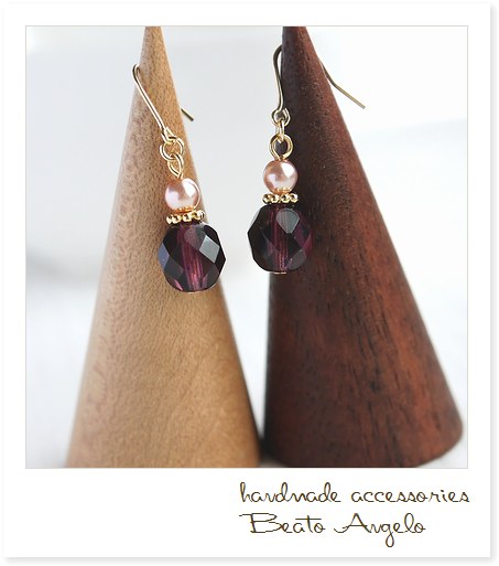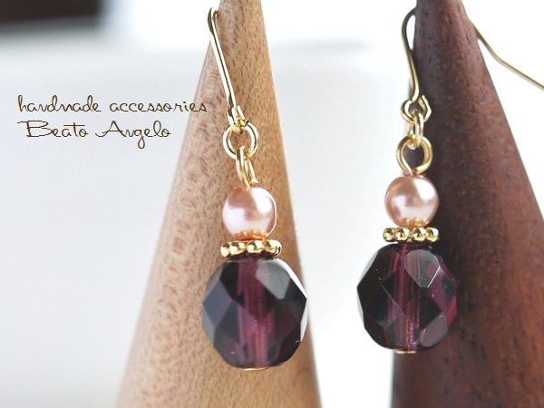 ◆◆+angelo+チェコビーズとチェコパールのピアス(p-360)アメジスト G 香水瓶 パープル シンプル チタン 樹脂 イヤリング
