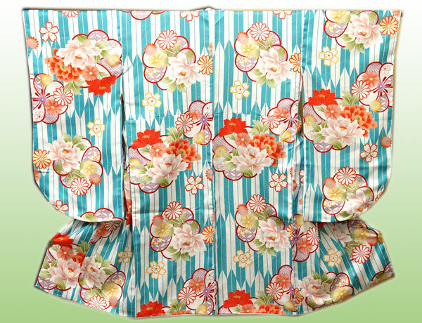 ☆★新品★☆小振袖(二尺袖着物)☆白・ミント系☆【NSYC-1】