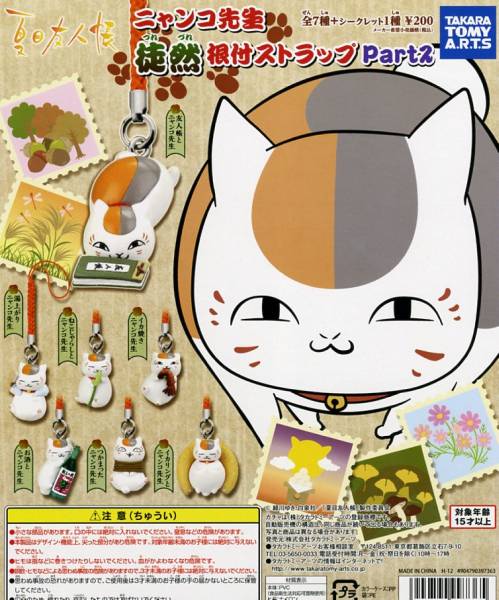 ◆夏目友人帳 ニャンコ先生 徒然 根付ストラップ Part.2…全8種+台紙 (湯上がり、ねこじゃらし、イカ焼き、お酒、黒ニャンコ…フィギュア)