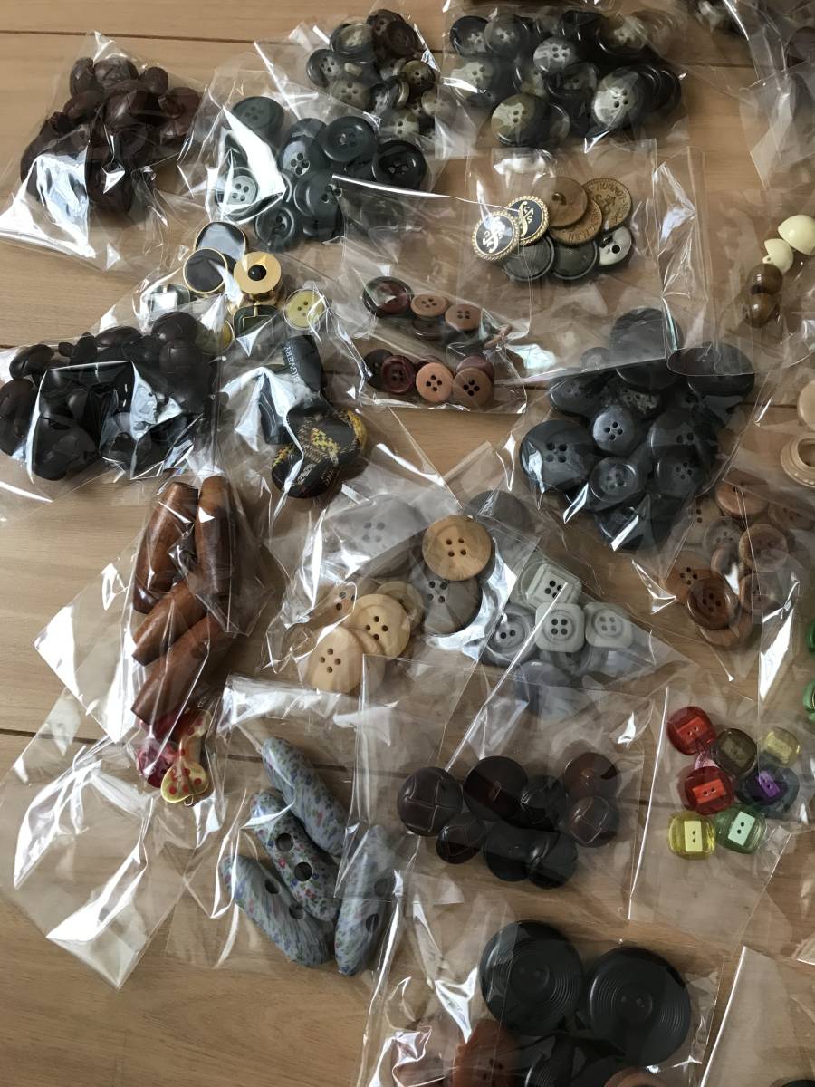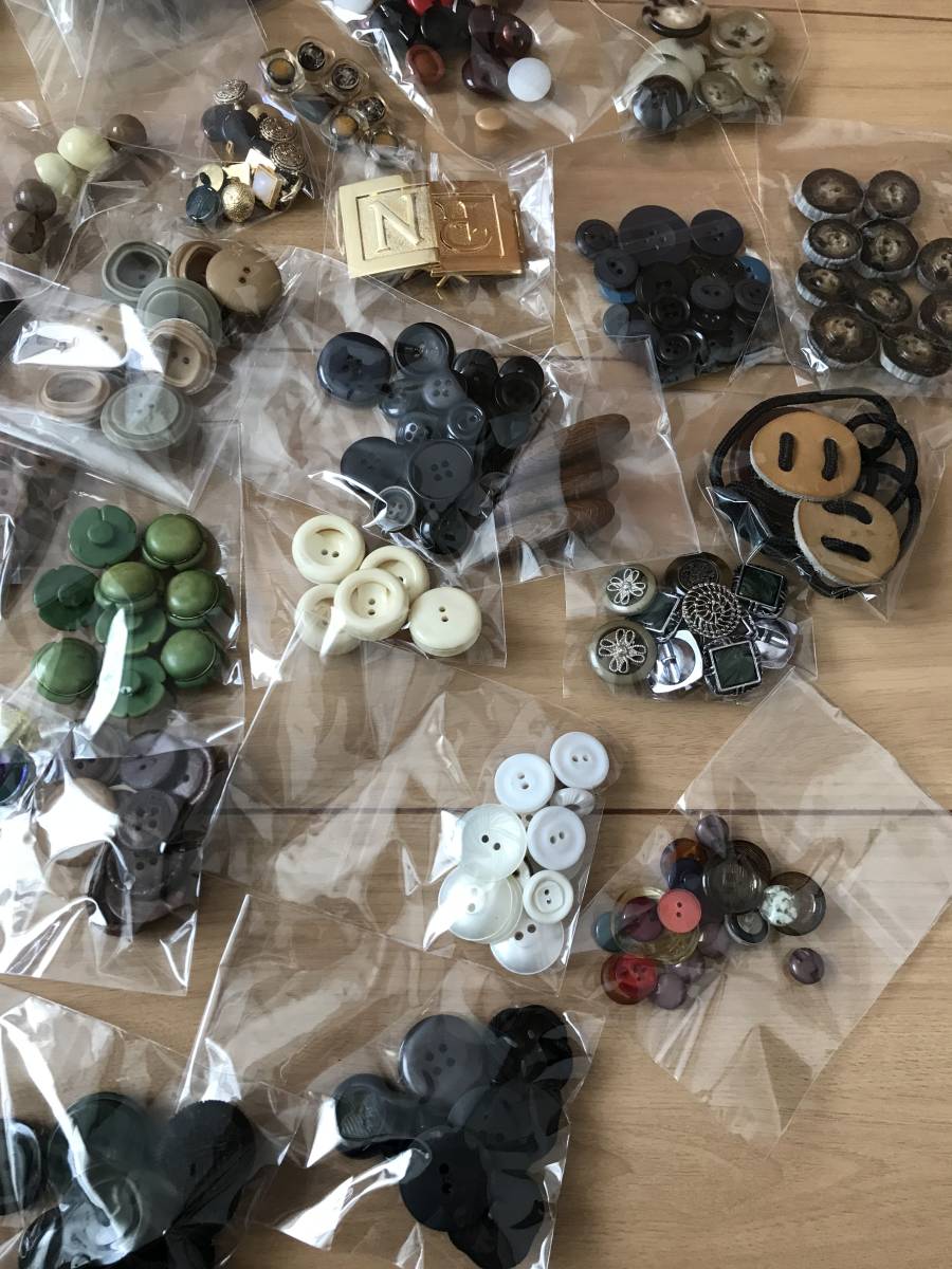新古品 1950-1980年代の可愛いボタンが約1000個くらいあります。ヴィンテージ(中古)のものもあります。) 70-80種類です。胡桃ボタン 4種類 ウッド製、金属製やバラの形や、シェルボタンなど、かわいいボタンです。新古、中古につき ノークレーム、ノーリターンでお願いいたします。