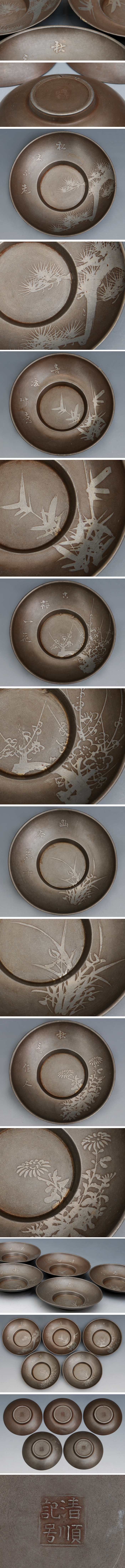 清順記号(銘)古錫 五君子 茶托 5客 茶托 径:10.7㎝ 重:452g 煎茶道具 中国古玩 唐物 中国美術 金属工芸 |