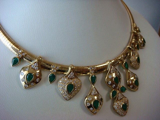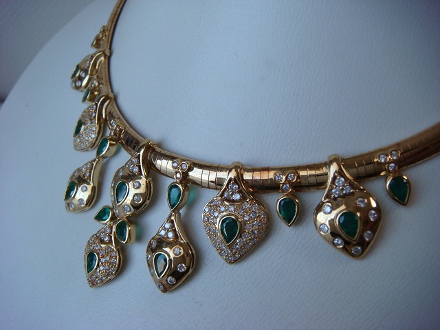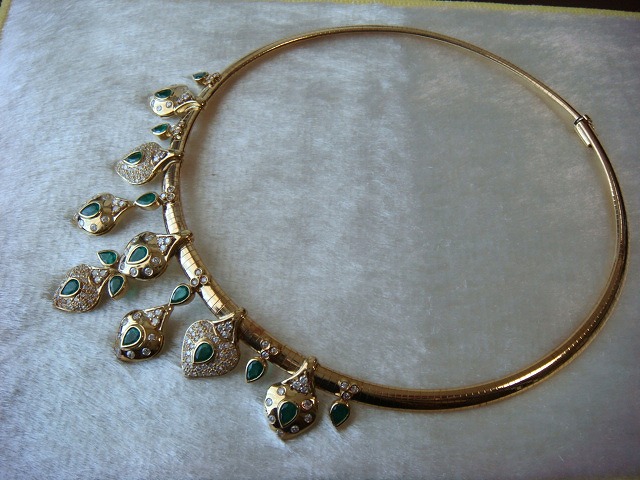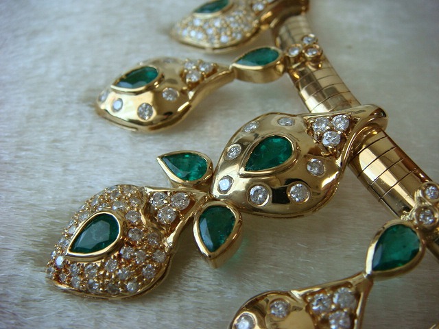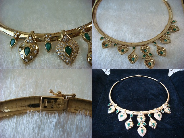 | ご覧頂きましてありがとうございます! 豪華!エメラルド&ダイヤモンドネックレス。エメラルドは5,75カラット。ダイヤモンドは3,95カラットです。 オーダー品です。豪華なパーティーではかなり目立ちます。5月生まれの花嫁にいかがでしょうか? 長さは約40cm。重さは約80gもあります。長期保管により金特有のくすみがあります。 追加画像がありますのでパソコンでご確認ください。 宝石との出会いは一期一会です。『いいな』と思ったら是非、身につけてあげて下さい。きっと宝石も喜ぶことでしょう! 宝石は決して貴女を裏切りません。身につけた貴女を守ってくれることでしょう。 いつも頑張っている自分へのご褒美にいかがでしょうか? 良いものをひとつお持ち下さい。一生物のジュエリーとなります。 高額商品ですので、実際に現品をご覧になられることをお勧めいたします。 画像での判断は難しいと思いますが、落札後の返品、クレーム等の無きよう、目利きの方、お解りになる方、面白そうだなと思った方、ご自分の自己責任においてご入札下さい。 モニター、パソコン、カメラによって色や感じ方が変わりますのでご注意下さい。商品についてはコレクター、質屋さん、お客様の委託品が中心ですので、ご質問の答えが遅くなる事がありますがご了承下さい。 商品説明につきましてはすべてをお知らせできませんので、質問にてお願いいたします。 基本的にはUSED品ですので、その点を十分にご理解の上ご入札下さい。途中で出品を取り下げる場合もありますがご了承下さい。 尚、トラブル回避の為、申し訳ございませんが、新規の方及び評価によってはこちらで入札を削除させていただく場合もございますが、ご理解下さい。 メールの確認は夜になりますのでご連絡が遅くなることもありますがご了承願います。 品物にも人と同じように『こころ』があると思います。喜んでいただけることが私にとっても品物にとっても一番良いことだと思います。 『落札したけど気に入らなかった』ということが無いように十分にお考えになってからご入札下さい。 発送は宅配便を予定しております。また発送には2,3日かかる場合もございますが、ご了承願います。 落札金額より僅かですが『子ども虐待防止 オレンジリボン運動』へ寄付をさせていただきますがご了承お願いいたします。 | |