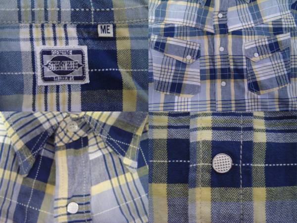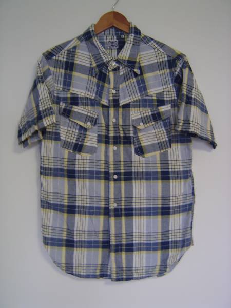 商品名:PHERROW'S STORMY BLUE チェック柄 半袖ウエスタンシャツ サイズ:表記ME 平置き:肩幅44cm 身幅(脇下~脇下)52cm 着丈(襟付根~裾)75,5cm 袖丈(脇下~袖裾)15cm ※素人採寸の為多少の誤差はご了承下さい。 カラー:ネイビー×ホワイト×イエロー 状態:品質表記なし。コットン系生地。スナップボタン(トップを除く)。スナップボタンフラップポケット×2。目立ったダメージ等無く良い方だと思います。 発送方法:レターパックプラス(配達記録付600円)orレターパックライト(配達記録なし430円) ※古着になりますので神経質な方、ご理解の無い方の御入札はお控え下さい。送料、振込手数料は落札者様の御負担となります。ノークレーム、ノーリターンでお願い致します。