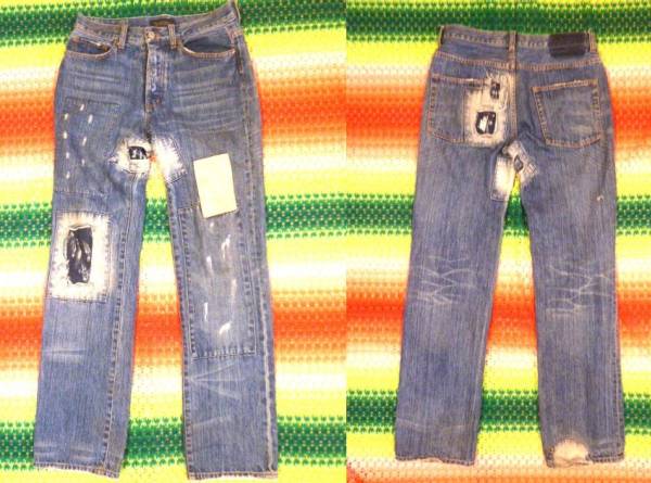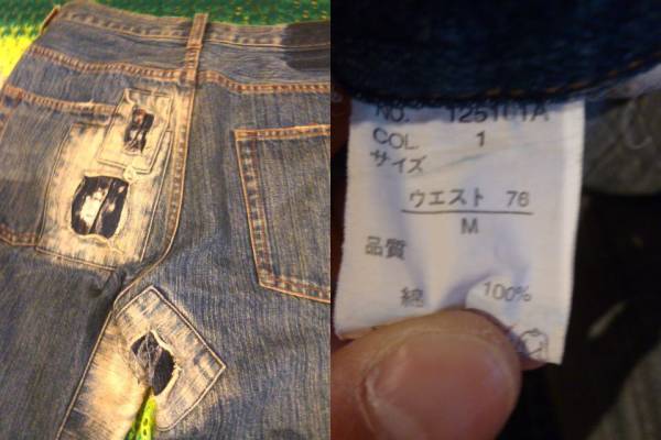 クラッシュ  リペア ダメージ加工 USED  デニム ジーンズ Mサイズ ヴィンテージスタイル