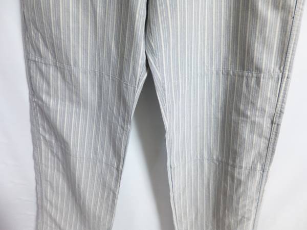 | コメント | 全体的なデザインはトラウザースタイプで、ノータック、シルエットはゆったりなストレートになります。膝の部分にステッチが入っていて、ダブルニーのような感じになっています(写真3枚目。実際には生地は2重にはなっていません)。 |