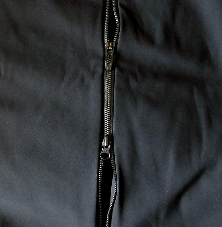 身頃には上質なトリコットの裏面にフィルムと肌触りの良いフリースを貼り合わせる事によって防風効果を