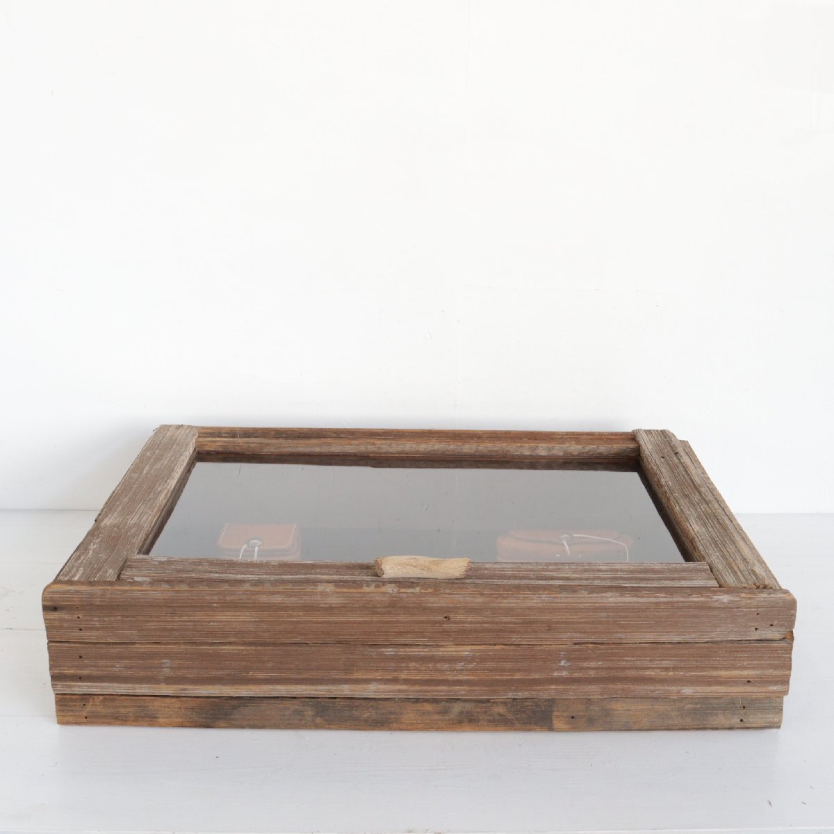 | 商品説明 explanation | 古材が使用されたヴィンテージのガラスショーケースです。 外側と取っ手部分は古材、内側と底板は新材(合板)、合皮が使用されています。 古材の経年による質感がよく、マットブラックなレザーが小物などのディスプレイに最適です。 ご自宅や店舗什器などにいかがでしょうか。 ※ 撮影で使用した小物は付属しません。 |