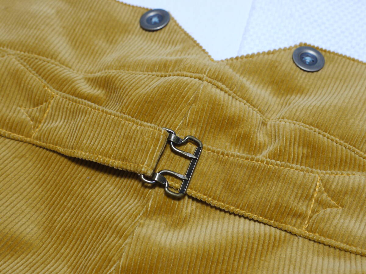 背面には尾錠がつき、尾錠で締めあげることによって、ウエストが細すぎる方もお腹が出ている方も前面がシュッとしたシルエットが出てきます