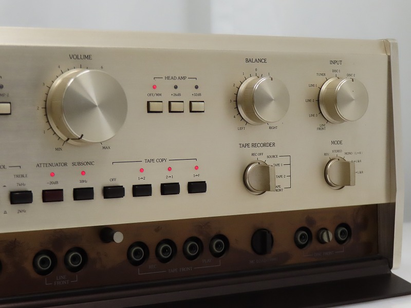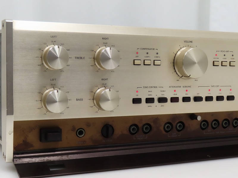 ■メーカー : Accuphase ■型番 : C-200L ■外径寸法 : W445×H160×D373mm ■重量 : 13.6kg 【商品の状態 当店での確認内容】 動作確認をしたところ、DISC1/2/FRONT入力の左チャンネルから出音が確認出来ません。また、背面端子類に接触不良があり出音が確認出来ない事がございます。 ※上記により【難あり商品】としての出品となります。 「商品の状態」に関しましては当方主観の目安となります。外観などは中古品で個人差もありますので詳細は画像にてご判断ください。 画像にて不明な点はご質問下さい。 出品商品は画像のものですべてになります。画像に写っているもの以外は付属いたしません。 ※注意※ ヤフオクのシステム上、送料表記が送料未定となっておりますが、送料に関しては全て有償となりますので下記を参照下さい。 【送料 全国一律 2,080 円 沖縄、離島は別途お見積り】 ※送料がお得になるサービスです(下取りシステムのご案内です) ストア決済利用時にクレジットカードやPayPay残高/PayPayクレジットを利用の方は留意点がございますのでこちらを参照上ご利用ください。 当ストアでは商品を安全にお届け出来るよう提携運送会社と協議の上、発泡緩衝材や強度段ボールの使用等 運送会社が指定する梱包方法や資材を採用しております。 より安全にお届け出来るよう商品仕様により梱包サイズが大きくなる場合や個口数が増える事がございます。 【当ストアオークションルールを入札前に必ずご確認ください。】 【落札後の取引手順】 ・落札後は取引ナビにて、必要事項をご入力後、送信ください。 取引終了後48時間(土、日は除く)以内に入力をお願い致します。 ※ご連絡が頂けない場合は落札者様都合でのキャンセルとさせていただきます。 ・落札代金(商品代金+消費税+送料)の入金をお願い致します。 ※大型商品の場合は送料確定後の決済となる為取引ナビを入力頂き、当ストアより送料のご案内が来るまでお待ちください。(土曜、日曜、祝日の場合は翌営業日より順次ご案内いたします) ・お支払い方法はクレジットカード/PayPay残高/PayPayクレジット/PayPay銀行/ゆうちょ銀行のみです。 ※商品代金引換(代引き)のお取り扱いはしておりません。 ※領収証の発行が必要な方はご連絡ください。 ※銀行振込の際の振込手数料はご負担願います。 ・入金確認後に出荷手配を致します。 (原則入金確認後3営業日以内に発送いたしますが、大型や重量のある製品はお時間をいただく場合もございます。) ・発送は当店指定の運送会社の元払いのみでの発送となります。 ※他の運送会社、送料代引き等は致しかねます。 ※落札者様ご自身での運送会社の手配いただく事も可能ですが荷物事故の責任の所在の問題上、梱包は致しかねます。 ※店頭にお越し頂き手渡しも可能(福岡市早良区)です。ご希望の方はご落札後にご連絡下さい。 ・大型/重量物商品の送料につきましては商品の特性上、荷降ろし状況等により送料が大きく前後し運送業者に別途見積りが必要な為、早めのお問い合わせにてお見積り上、入札をお願い致します。 【初期不良の保証について】 ・商品到着後の初期動作不良、また配送中の事故による破損、不具合が有る場合は、商品発送後10日以内に当ストアまでご連絡ください。当ストアでは修理での対応を優先させて頂きますが、修理不可の場合は全額返金させて頂きます。 (商品代金+消費税+送料のお支払い頂いた金額となります) 【初期不良の保証の対象外について】 次の場合は保証の対象外となりますのご留意ください ・ジャンク商品、現状商品、難あり商品での出品商品。 ※難あり商品に関しましては動作確認時に一部動作不良が確認された商品になり、記載している動作確認以外にも、動作不良がある可能性もございます。こちらに関しましても保証対象外となりますことをご理解ください。 ・年代物のオーディオなどで、当店にてわからない範囲で部品が交換されている場合 ・楽器類の特殊機材(マイクロスコープ等)での確認までは行っておりません。気になる方は事前にご質問いただくか、入札をお控えください。 ※初期不良に関しましては【商品の状態】に記載のもの、またそれによって起因する動作不良は対象外です。 ※商品発送後10日を過ぎてのご連絡は対応が出来ませんので、商品が到着しましたらお早めに確認をお願い致します。 【メーカー保証の加入・継承】 ・未使用品、展示品やメーカー保証期間が残っている商品に関しまして、メーカー保証の加入、継承が必要な方は、落札後取引ナビ内にて当ストアにお知らせください。商品発送までにご連絡いただけない場合、メーカー保証の手続きを承れない場合があります。 【評価について】 ・評価不要の場合、必ず取引ナビの「要望欄」にてお知らせください。それ以外でご連絡をいただいた場合、対応できない可能性がございます。一度行った評価はシステム上取り消しが行えませんのでご了承ください。 【入札削除・キャンセ