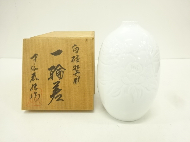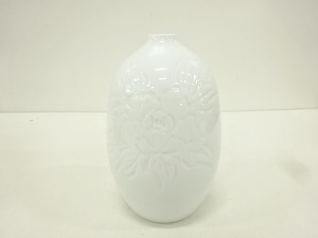 作家物 白磁 牡丹彫 一輪挿し (AJAF2DHP-027)