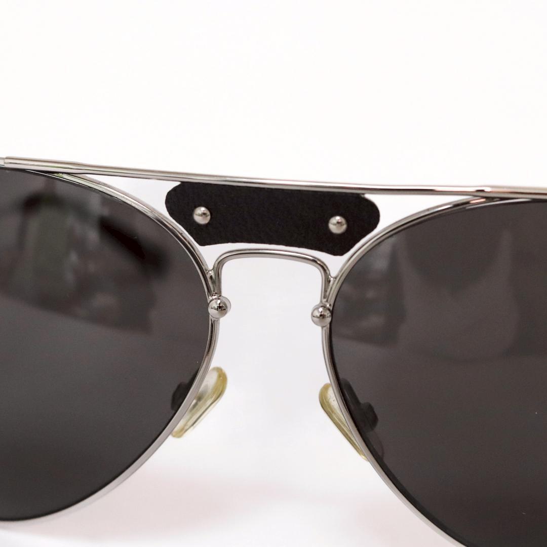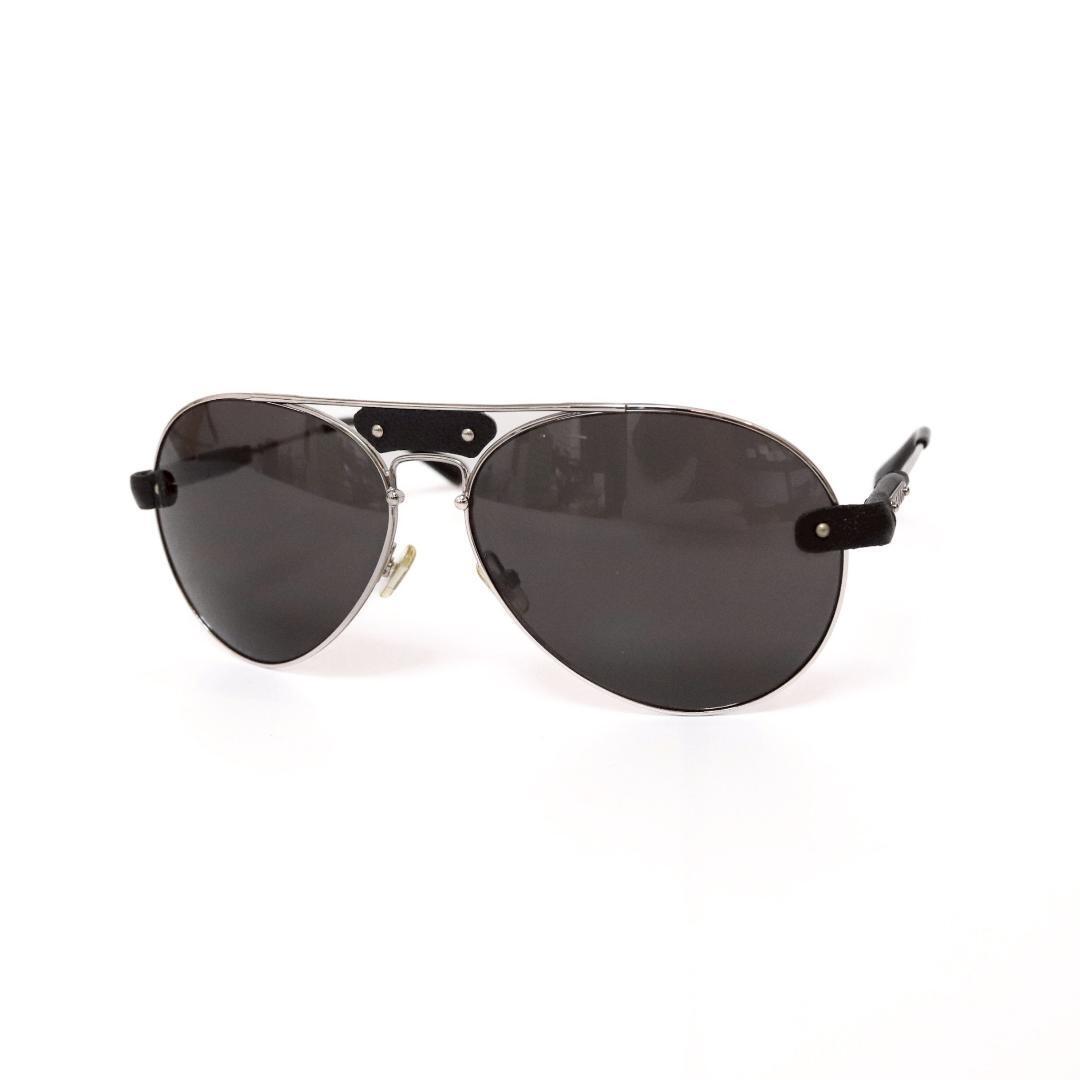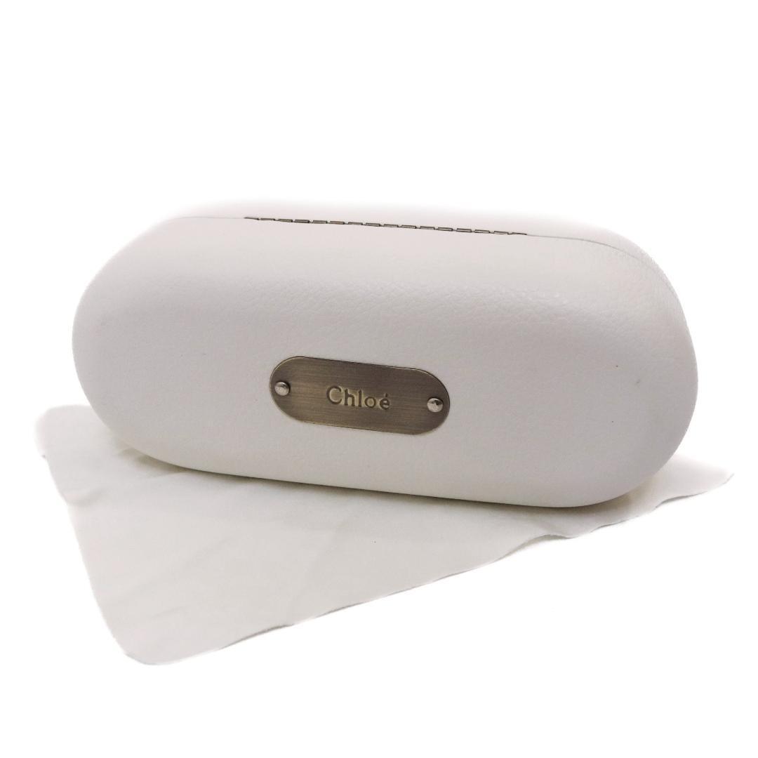 シルバーフレームにブラックレザーのトリムをあしらい、テンプルには「Chlo」ロゴプレートを配置。クラシックなパイロットシェイプにクロエらしい柔らかさとモード感を融合した、洗練のデザインです。