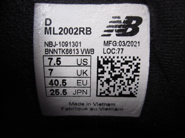 New Balance ニューバランス ML2002RB スニーカー グレー/ブラック US7.5D/25.5cm USED