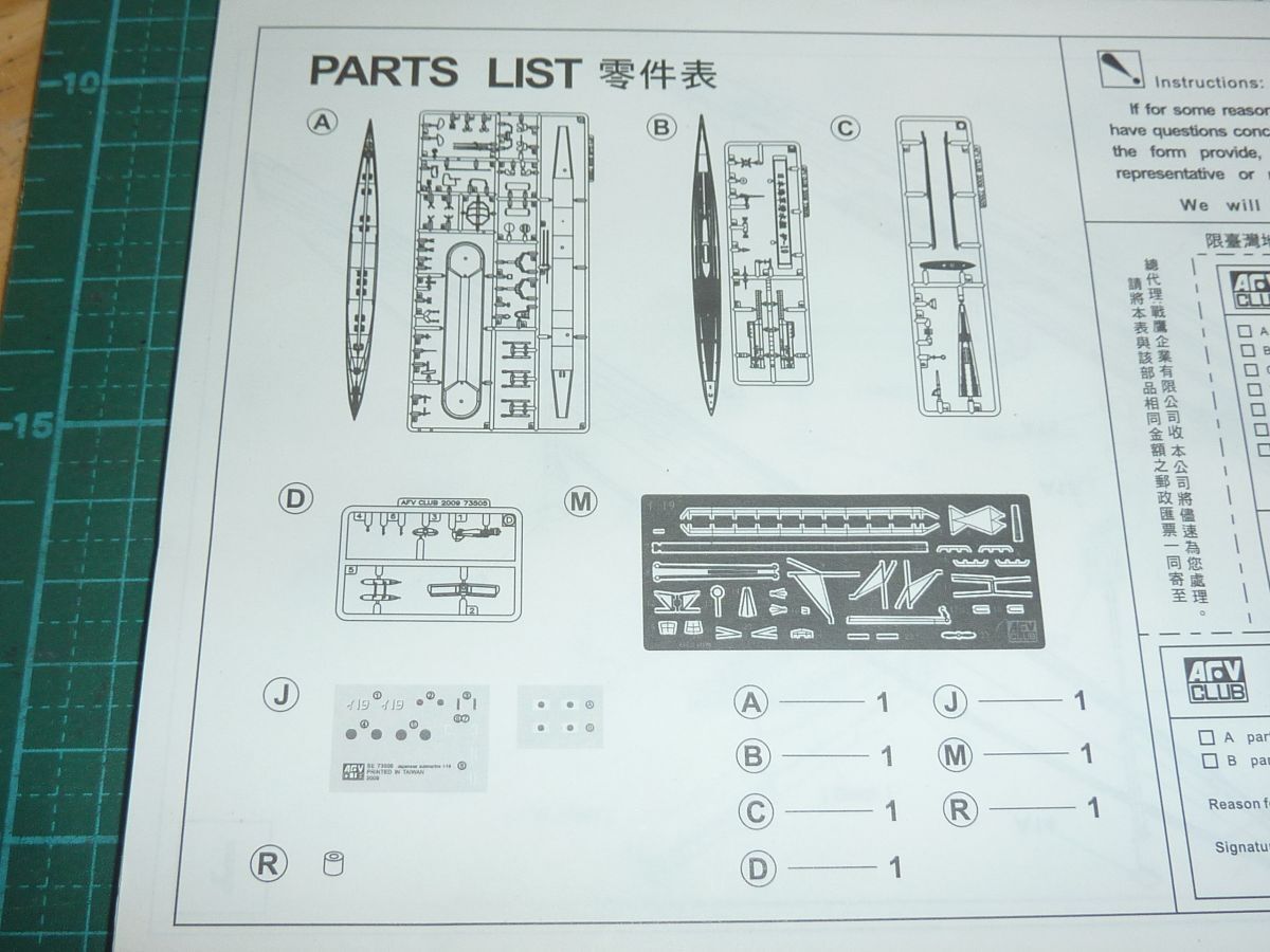 説明書のパーツ配置図の写真もアップしていますのでそちらと比べると欠品パーツがわかると思います。