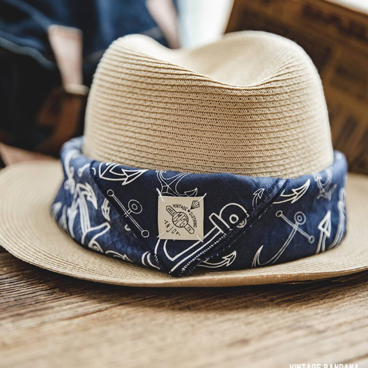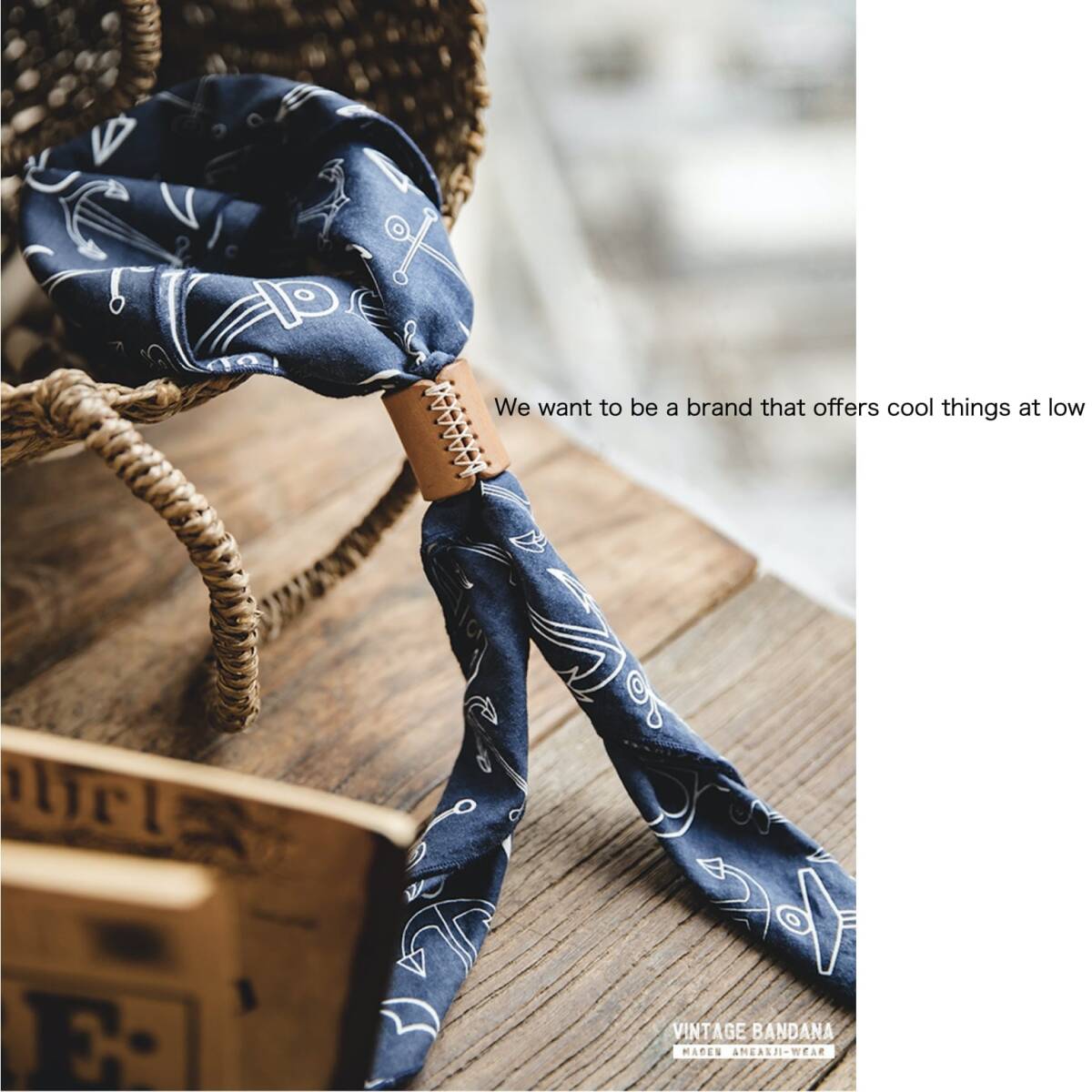 上質なコットン生地に、味わい深い本革スライダーを組み合わせたヴィンテージスタイルのバンダナ。
