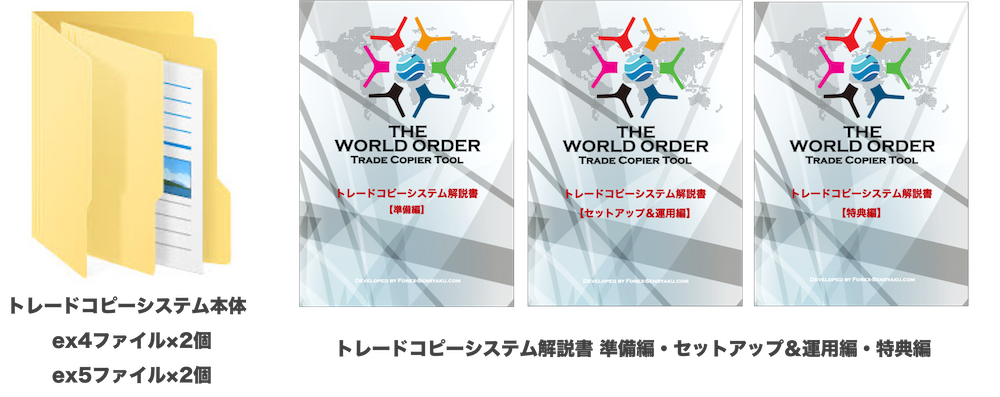 | 現在出品中のWorld OrderコピーツールのMT4&MT5・フルセット版です。 これ一つでMT4→MT4・MT4→MT5・MT5→MT4・MT5→MT5全てのコピーが可能になります!! このツールを使えば、EAだろうがMAMだろうが、好きな口座にまるまるコピーできちゃいます。 なんなら巷で公開してる閲覧用の口座だってコピー可能なんです…しかも超高速で。 どれだけ早いかって、こんなに早いんです!! ちなみに、右上がMT5版、右下がMT4版の動きです。 ■WorldOrderコピーツールMT4&MT5版  *メモリ2.5GBのVPS環境でのテスト稼働 どうです?? めちゃくちゃ早くないですか? 高スペックな環境ならまだしも、一般的なVPS環境でこれですから もっと良い環境でやったらさらに高速化も可能です! なお、デモ口座で稼働するMT4無料版もご用意していますので 実際にどれくらいスムーズなのか、その目でお確かめ下さい。 ■WorldOrderコピーツールMT4デモ口座版 https://forex-senryaku.com/downroads/WorldOrder_Demo.zip ■WorldOrderコピーツールMT4 Webマニュアル https://forex-senryaku.com/copytools-mt4-manyual-main ちなみに、MT4とMT5のどっちかしか使わないって方は単品版もご用意しています。 ■World OrderコピーツールMT4版 https://auctions.yahoo.co.jp/seller/mt4_Copytools ■World OrderコピーツールMT5版 https://auctions.yahoo.co.jp/seller/mt5_Copytools そんなわけで、今回はMT4やMT5の自動売買EAを使っているあなたに この超高速コピーツールを使って収益をさらに上げることができる方法をお伝えします。 | |||