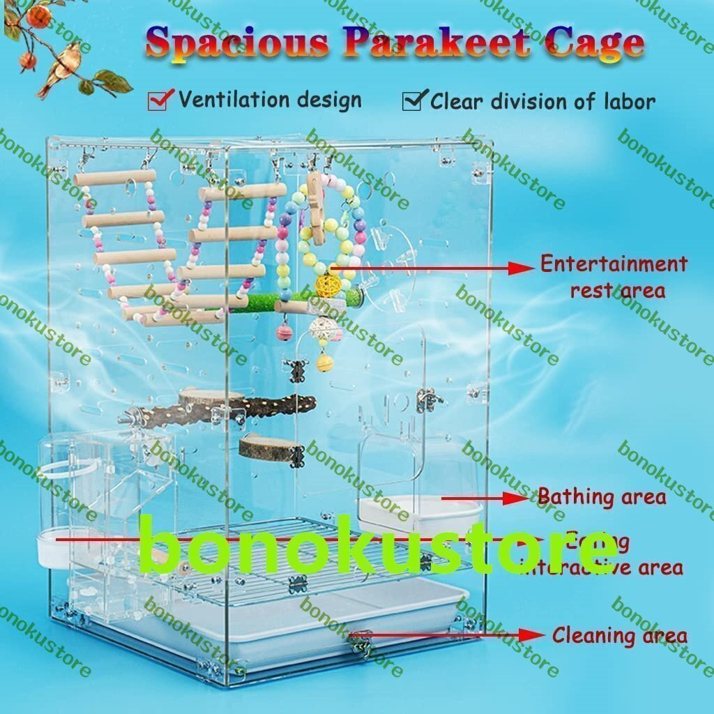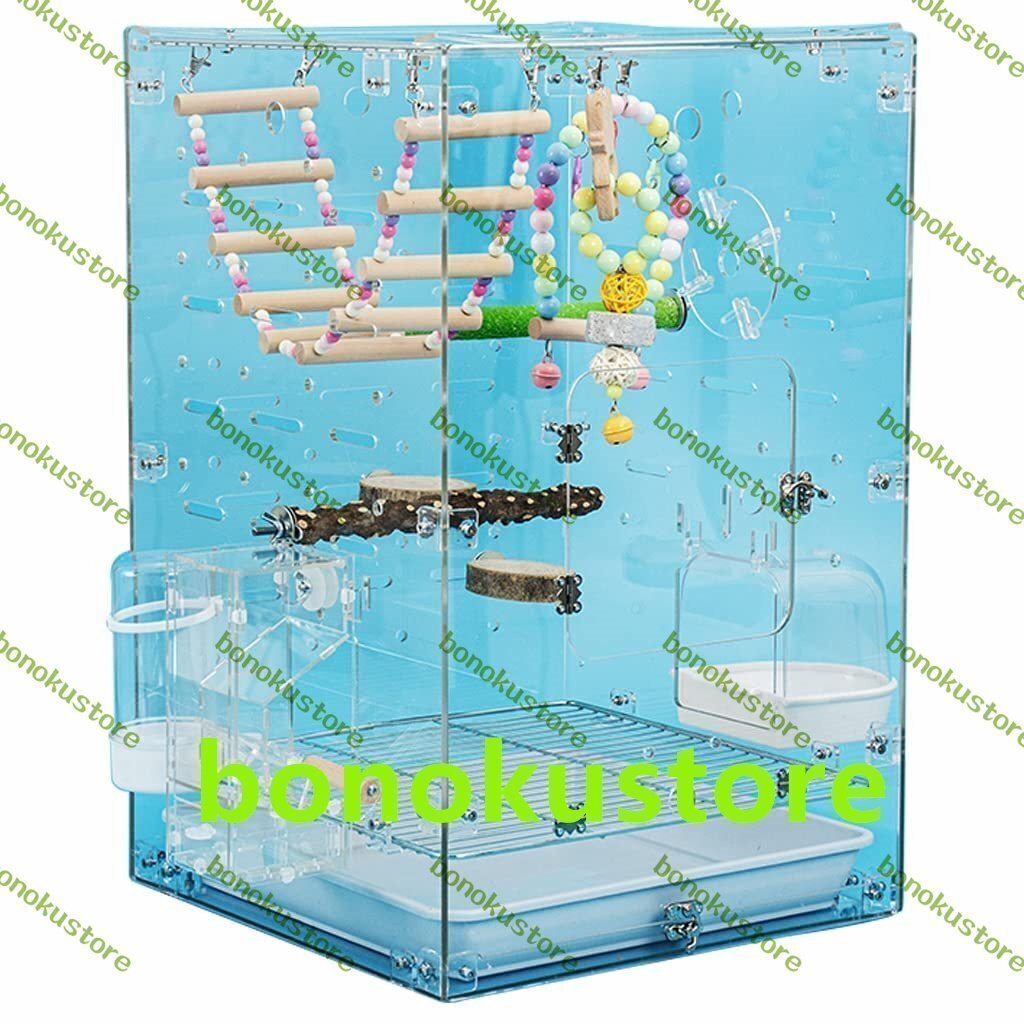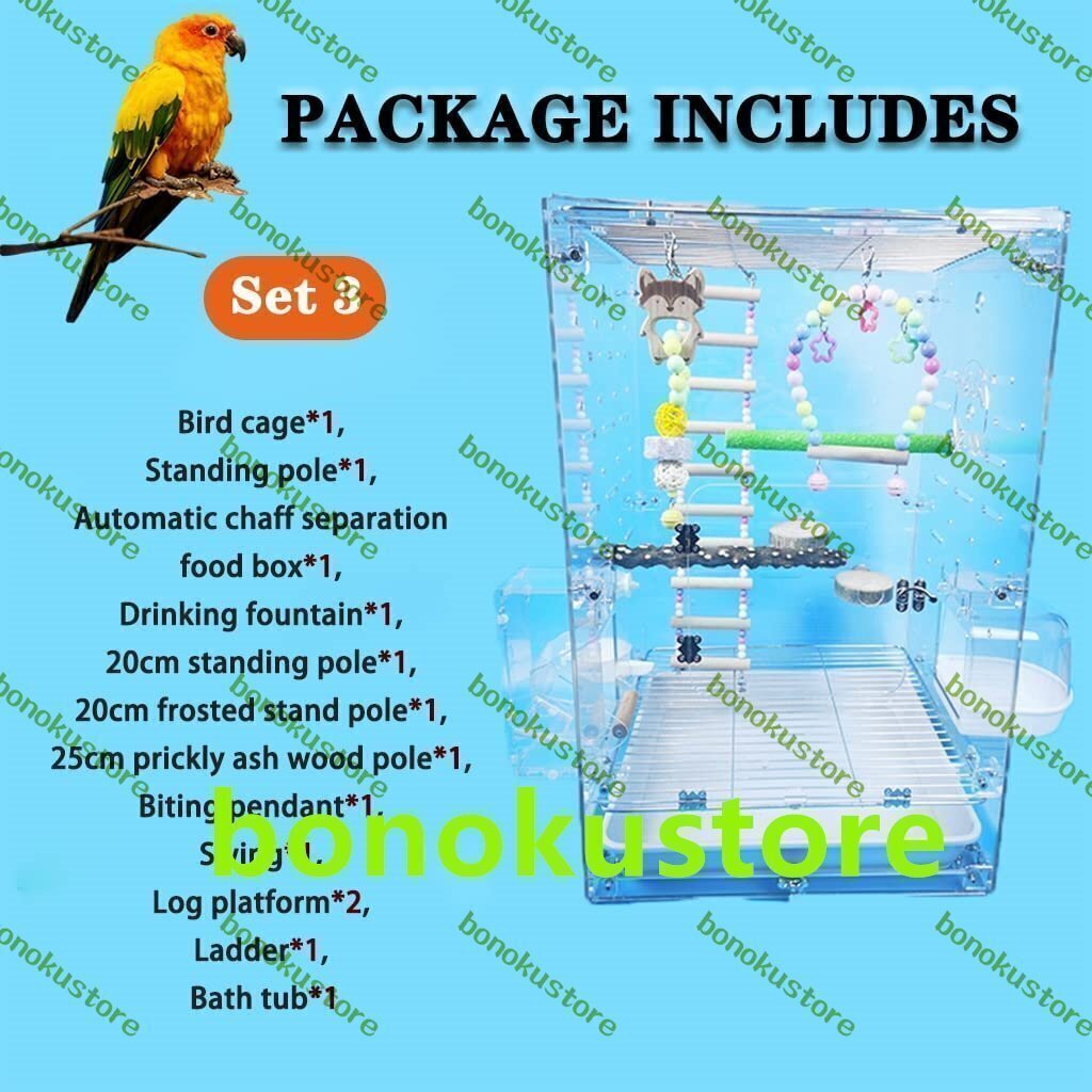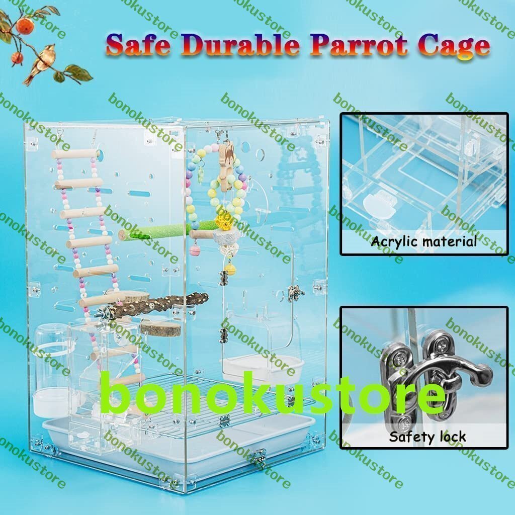 鳥かご 透明アクリル観賞用鳥かご、 ペットショップオウム繁殖ケージ、 お手入れが簡単なポータブルラブバードケージ (Color : Clear-set3)